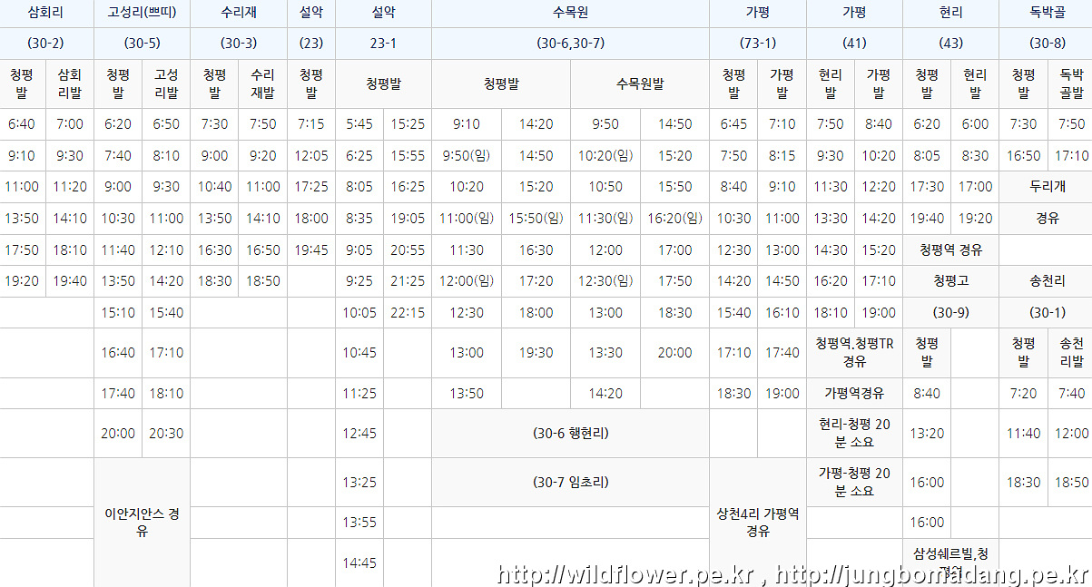 청평터미널 시내버스 시간표 - 출처는 가평군청.