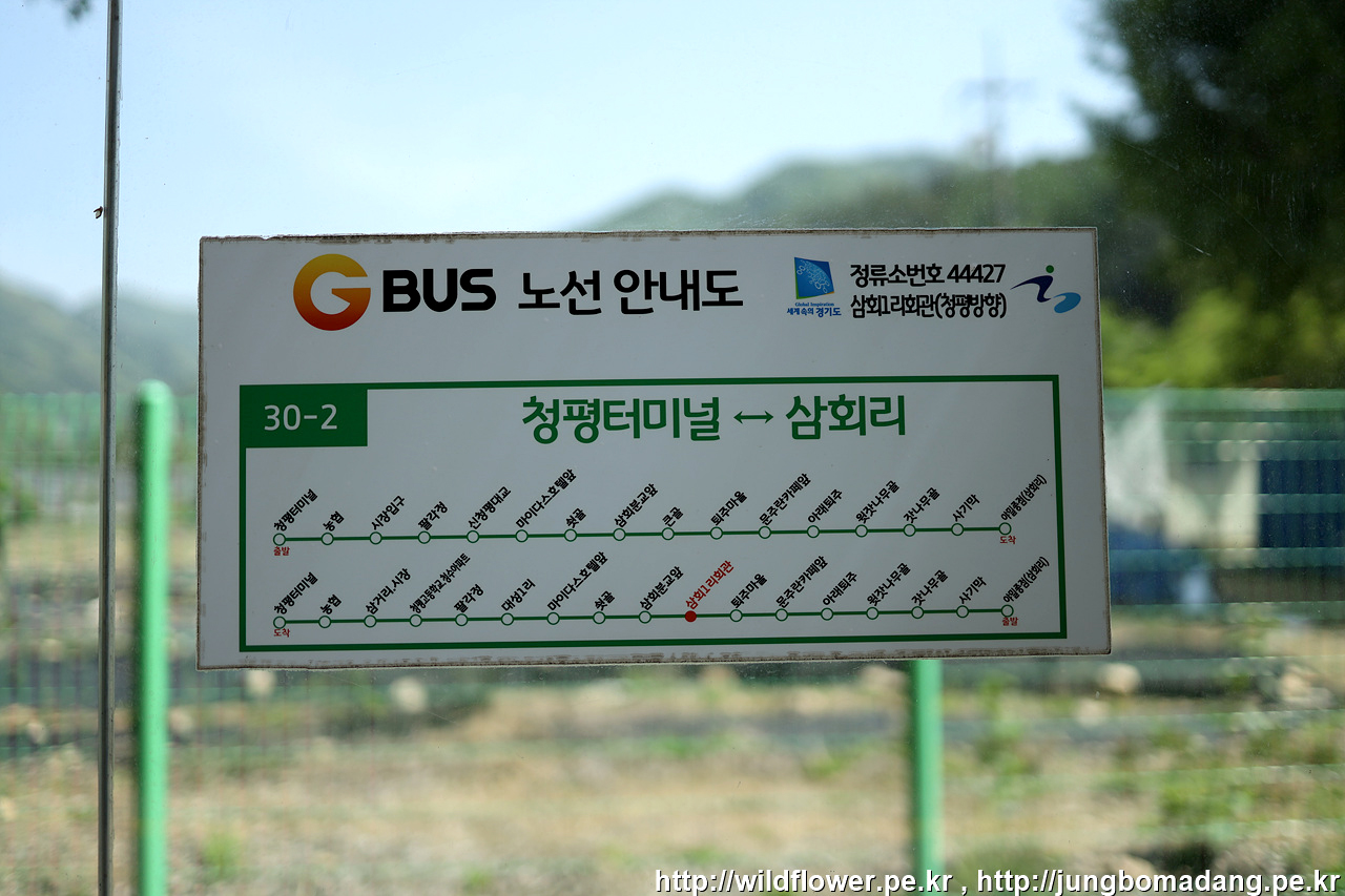 대중교통으로 청평역에 하차하여 1번 출구 밖으로 나와서 청평버스터미널까지 걸어간 후 30-2 버스를 타고 삼회리로 이동합니다.