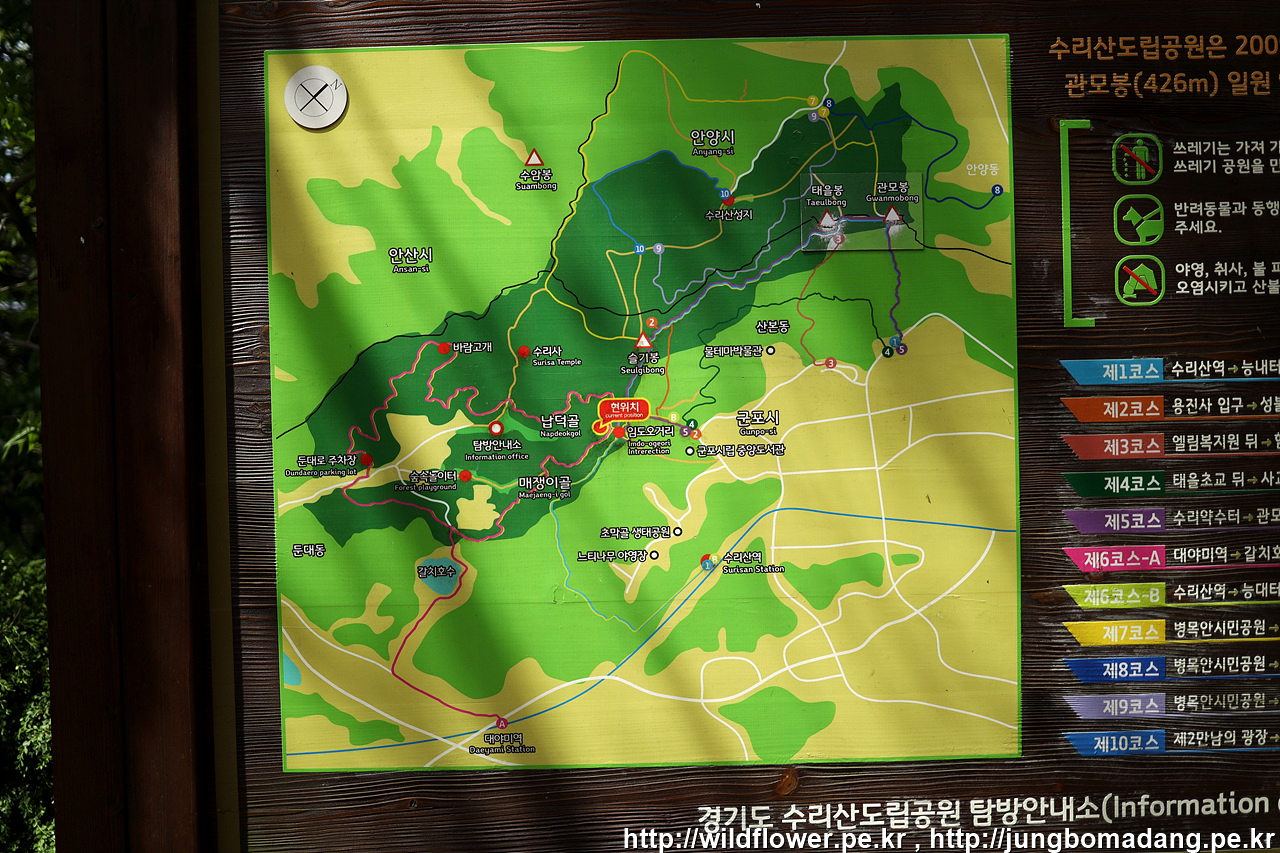 원래 가려던 곳은 오산대역 물향기수목원이었는데, 열심히 가다 보니 오늘이 월요일이라는 사실을 깨닫고, 매주 월요인은 물향기수목원은 도립이라 휴관이기에, 어딜 갈까? 하다가 수리산으로 발길을 돌립니다.