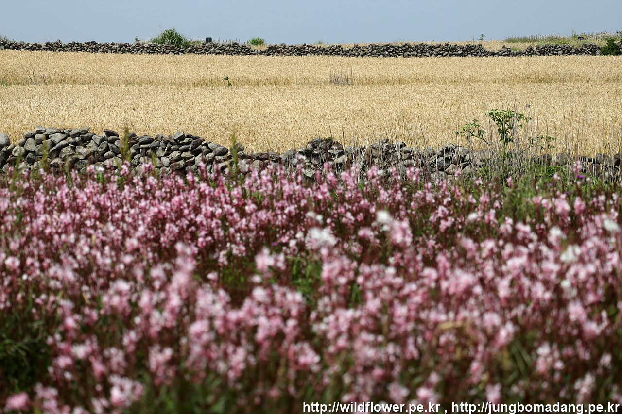 홍접초 뒤로 황금보리