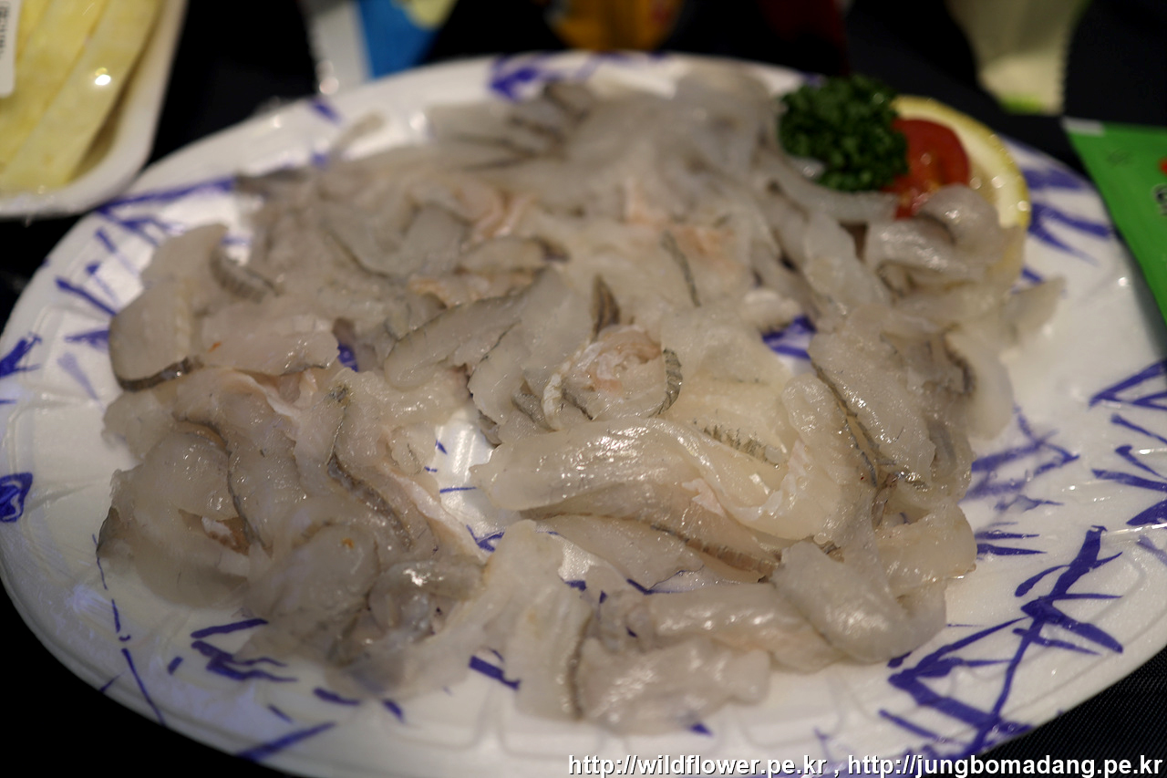 도다리회. 양이 적은 줄 알았는 데, 결코 적지는 않네요.