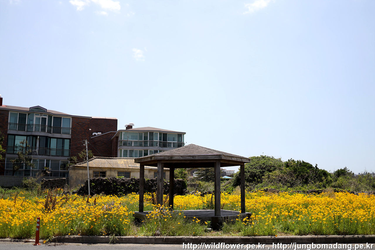 금계국 뒤로 비양도가 보입니다.