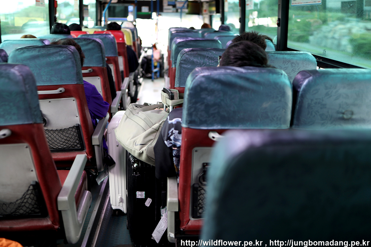 숙소로 가는 길. 사람들이 자주 이용하는 버스에 통로가 꽉! 차도록 캐리어 박아둔 개넘 둘.