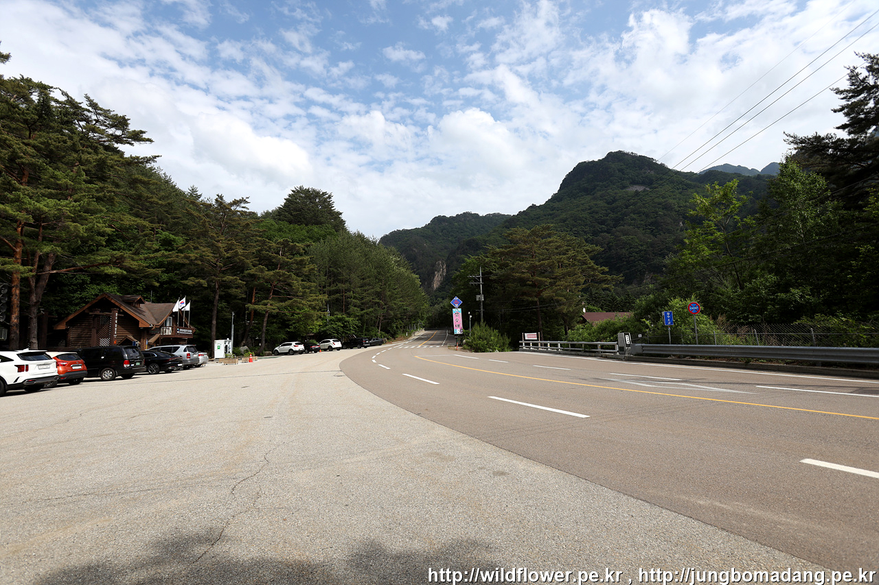 장수대 버스 정류장 앞 풍경. - 한계령 방면