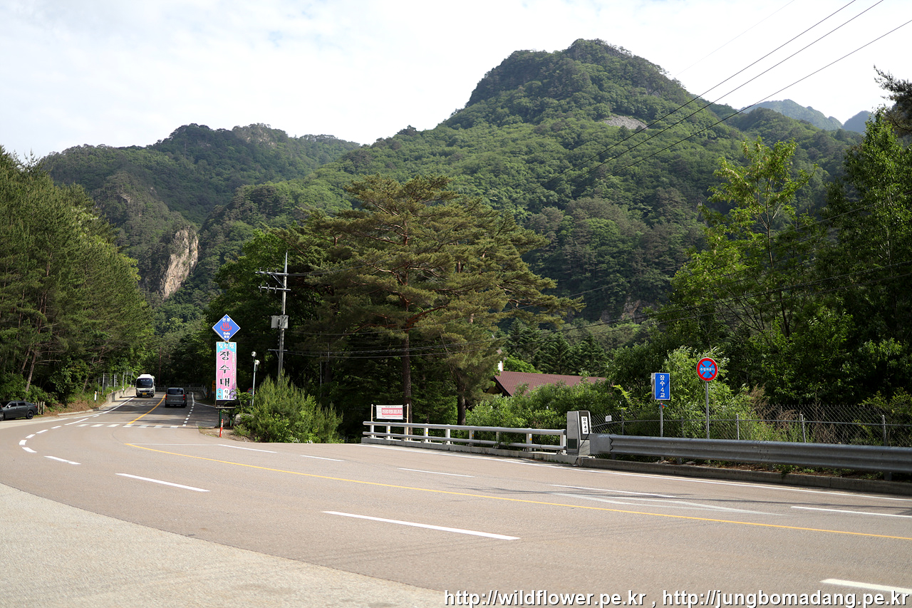장수대 버스 정류장 앞 풍경. - 한계령 방면