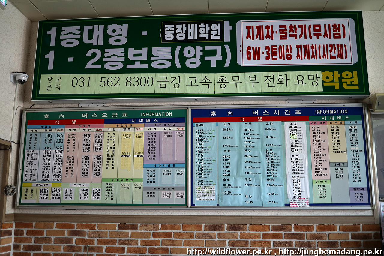 원통터미널 시외버스, 시내버스 시간표.