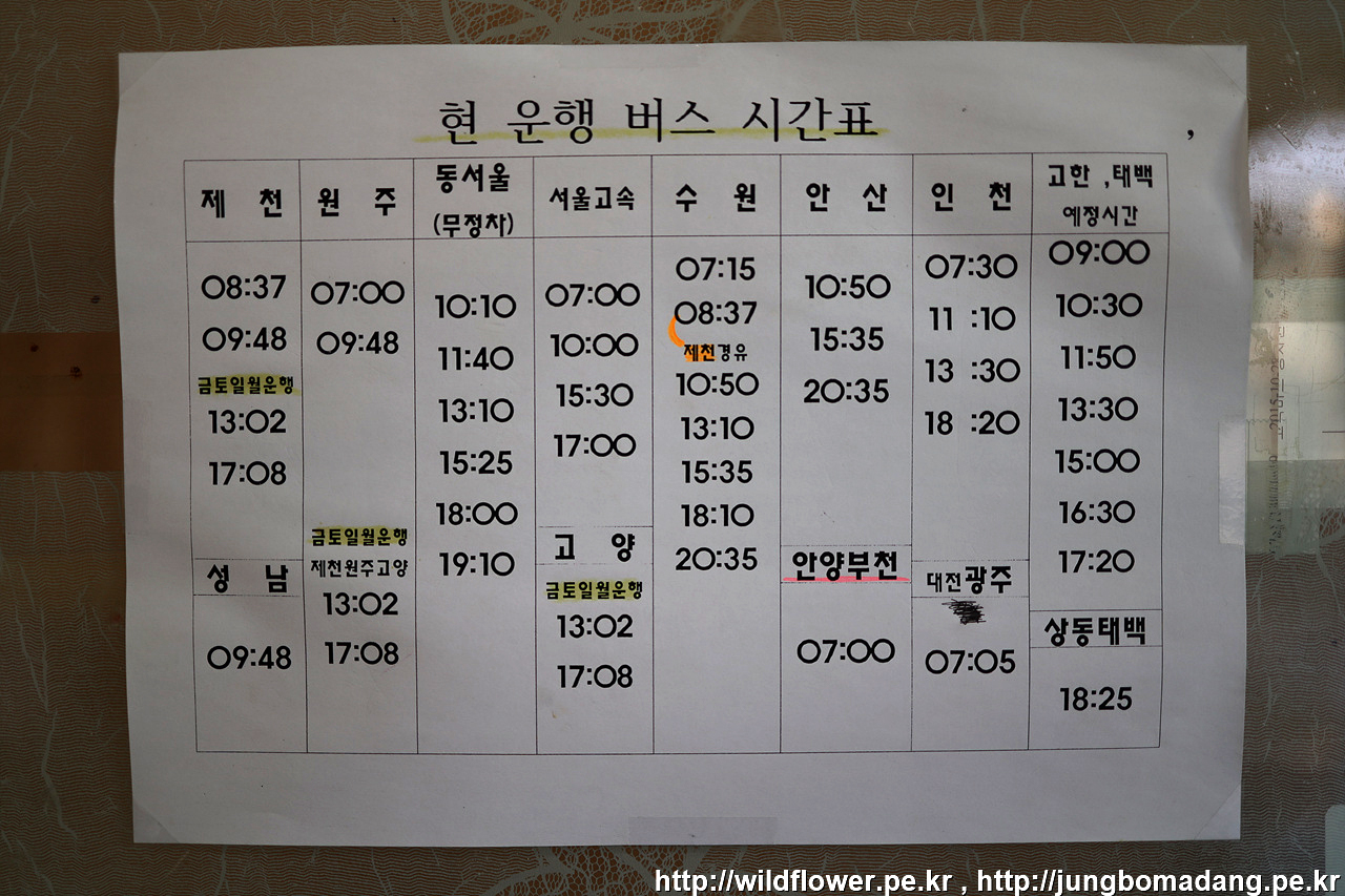9시 20분에 영월시외버스터미널에 도착하여, 터미널에서 우선 시내버스 시간표와, 시외버스 시간표를 담아 둡니다.