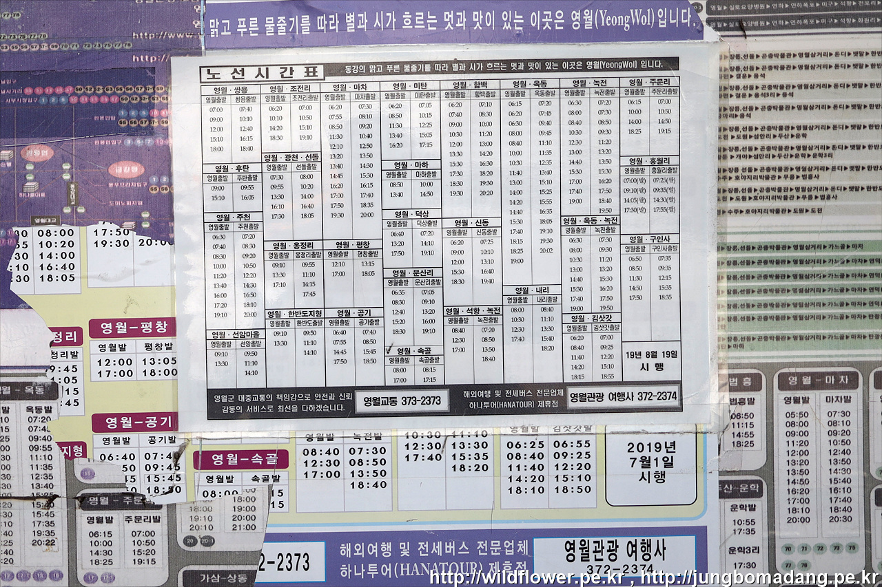 9시 20분에 영월시외버스터미널에 도착하여, 터미널에서 우선 시내버스 시간표와, 시외버스 시간표를 담아 둡니다.