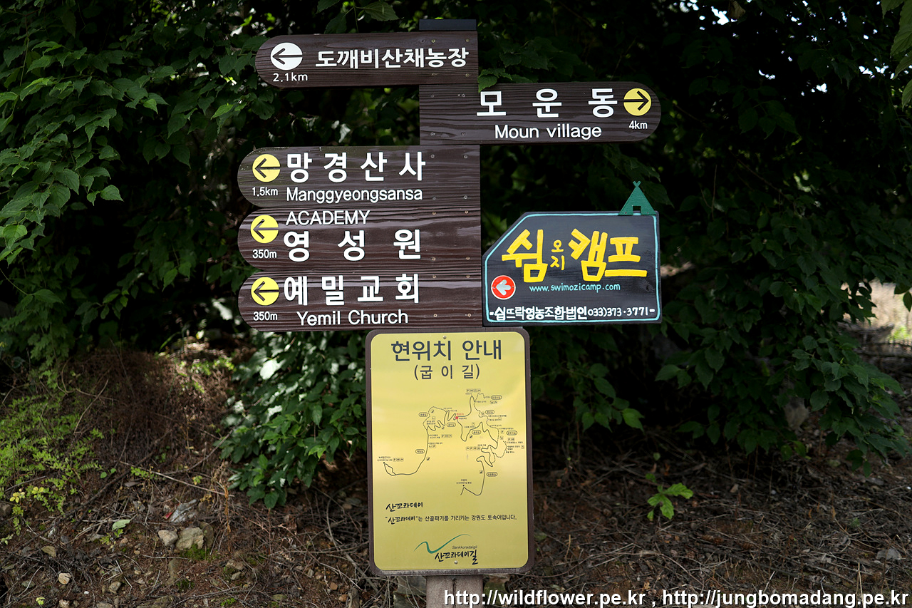 예밀 정류장에서 망경산사까지는 오름 경사가 있어 다소 땀이 나고, 망경산사에서 만경사까지 길을 초반에는 살짝 오름이지만, 중반 부터 시원한 숲길이라 걷기 좋았습니다. 이후 모운동으로 내려가는 길을 중간 중간 그늘이 있어 바람도 불어 시원한 길이었습니다.