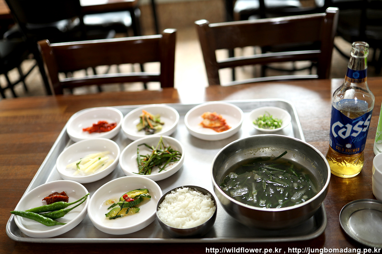 새벽부터 부지런을 떨었더니 시장기가 몰려와서 10시가 안된 시간 식당에 들립니다. 다행히 식사가 가능하다고 하네요. 올갱이해장국과 맥주 한병 주문합니다.