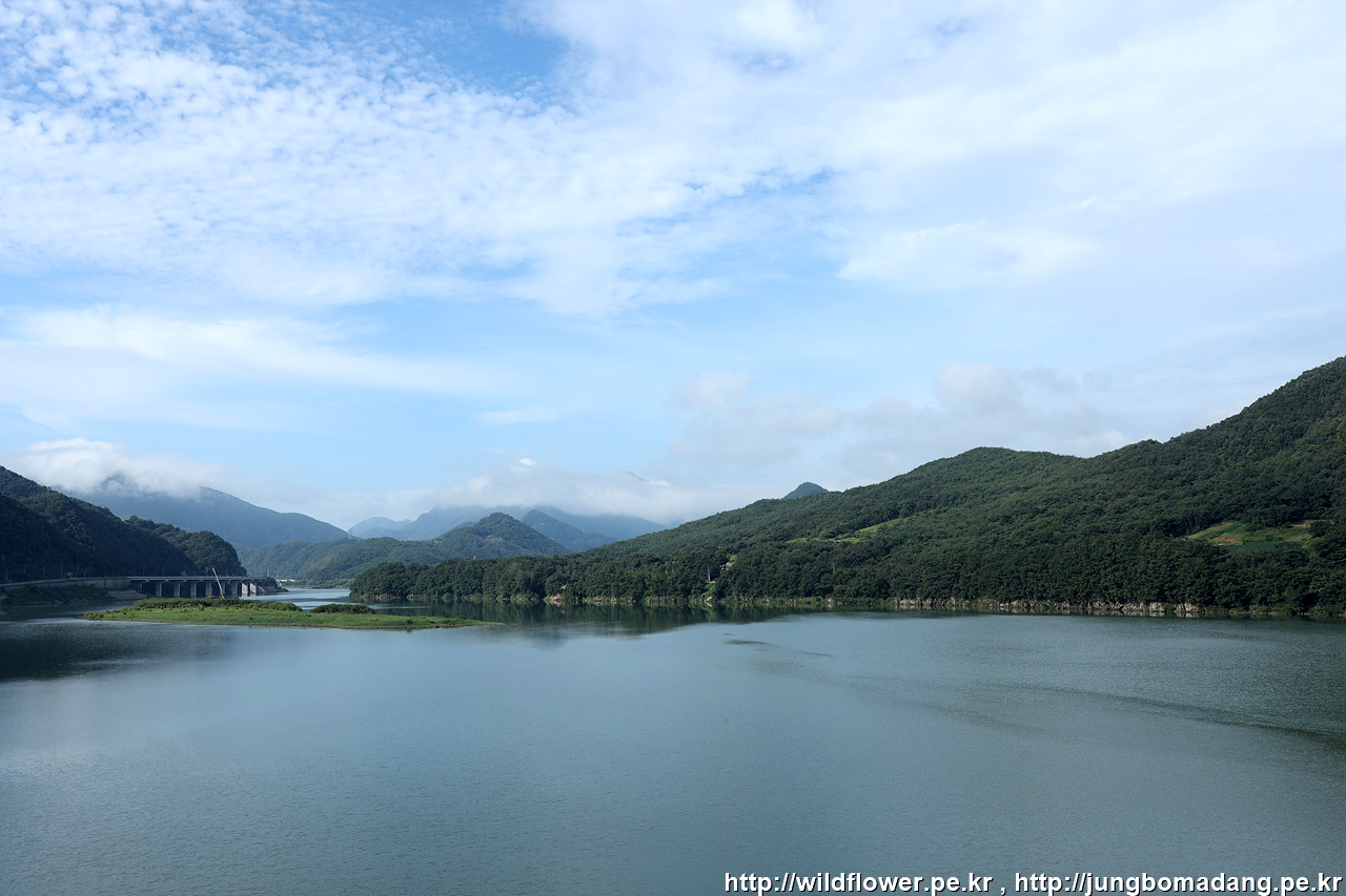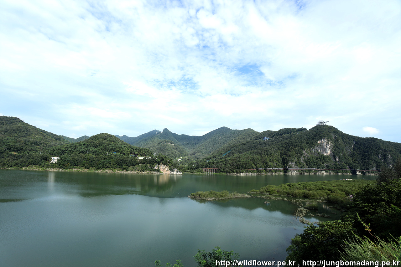 왼편 시루섬 뒤로 제비봉, 월악산 국립공원의 봉우리들이 보이네요.