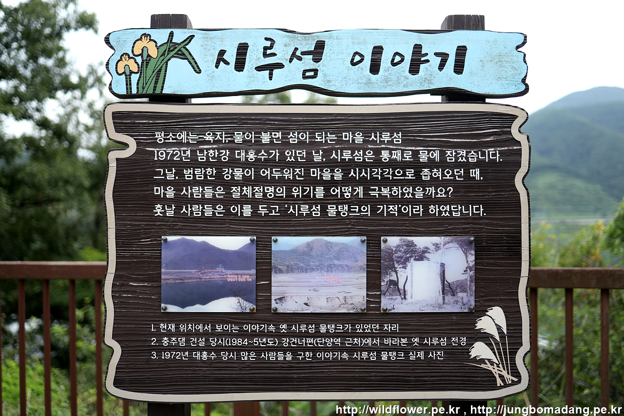 이끼터널 구경을 마치고 되돌아가는 길에 단양강에 시루섬을 담아 봅니다. 제대로 보려면 만천하 스카이워크에 올라야 합니다.