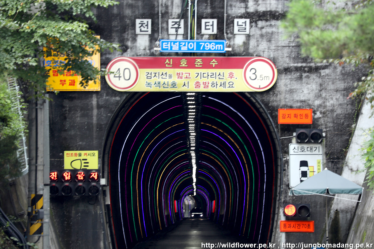 단양강 잔도길이 끝나는 지점에 만천하 스카이워크를 오르는 모노레일 매표소가 있고, 천주터널과, 애곡터널이 있습니다. 그리고 애곡터널 좌측편으로 이끼터널로 가는 길이 있구요. 만천하 스카이워크는 유료이고, 천주터널과 애곡터널은 걸어서 지날 수 없는 터널입니다.