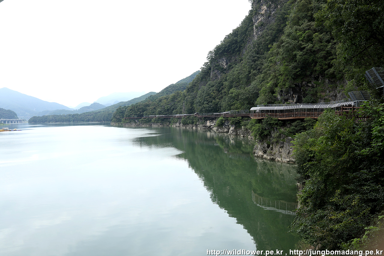 단양강 잔도길 - 5년전에는 지붕이 없었는 데, 지붕이 설치되어 있네요. 우천시에도 걷기 괜찮을 것 같습니다.