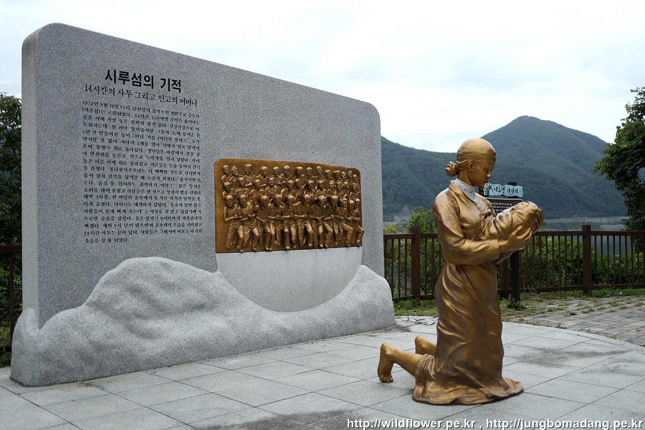 이끼터널 구경을 마치고 되돌아가는 길에 단양강에 시루섬을 담아 봅니다. 제대로 보려면 만천하 스카이워크에 올라야 합니다.