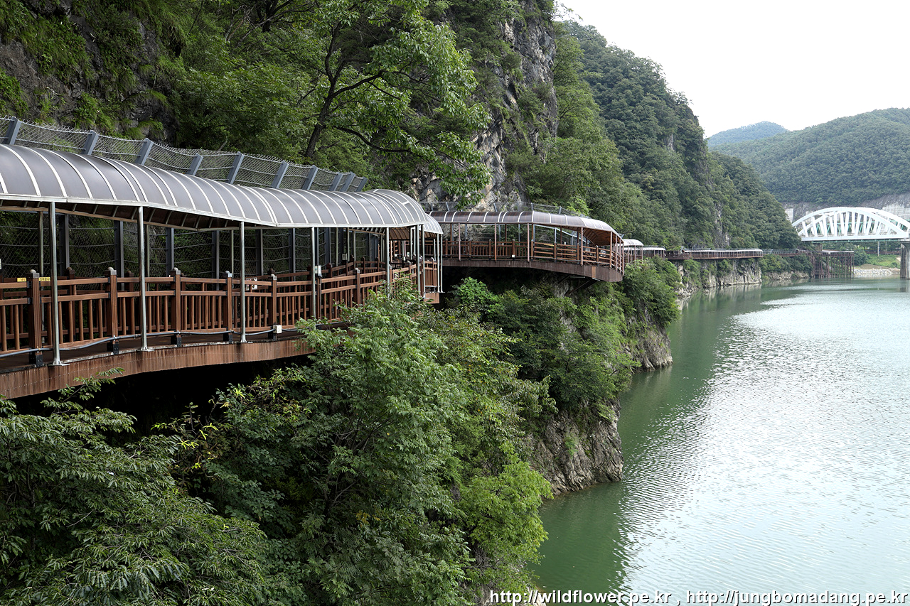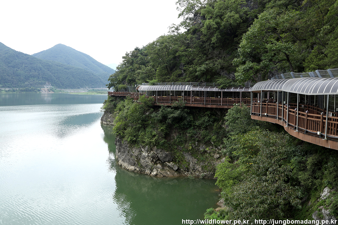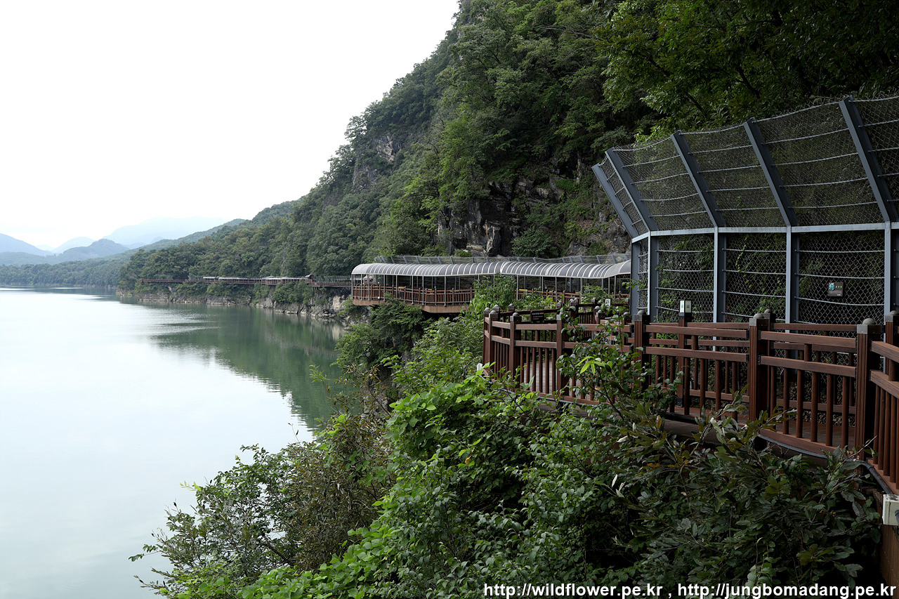 단양강 잔도길 - 5년전에는 지붕이 없었는 데, 지붕이 설치되어 있네요. 우천시에도 걷기 괜찮을 것 같습니다.