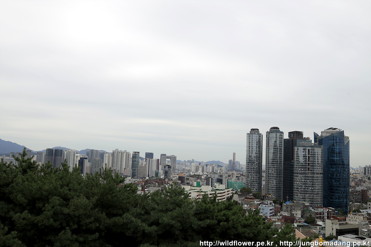 북한산 능선을 바라보고, 아래 남산의 살포시 물든 가을을 느껴 봅니다.