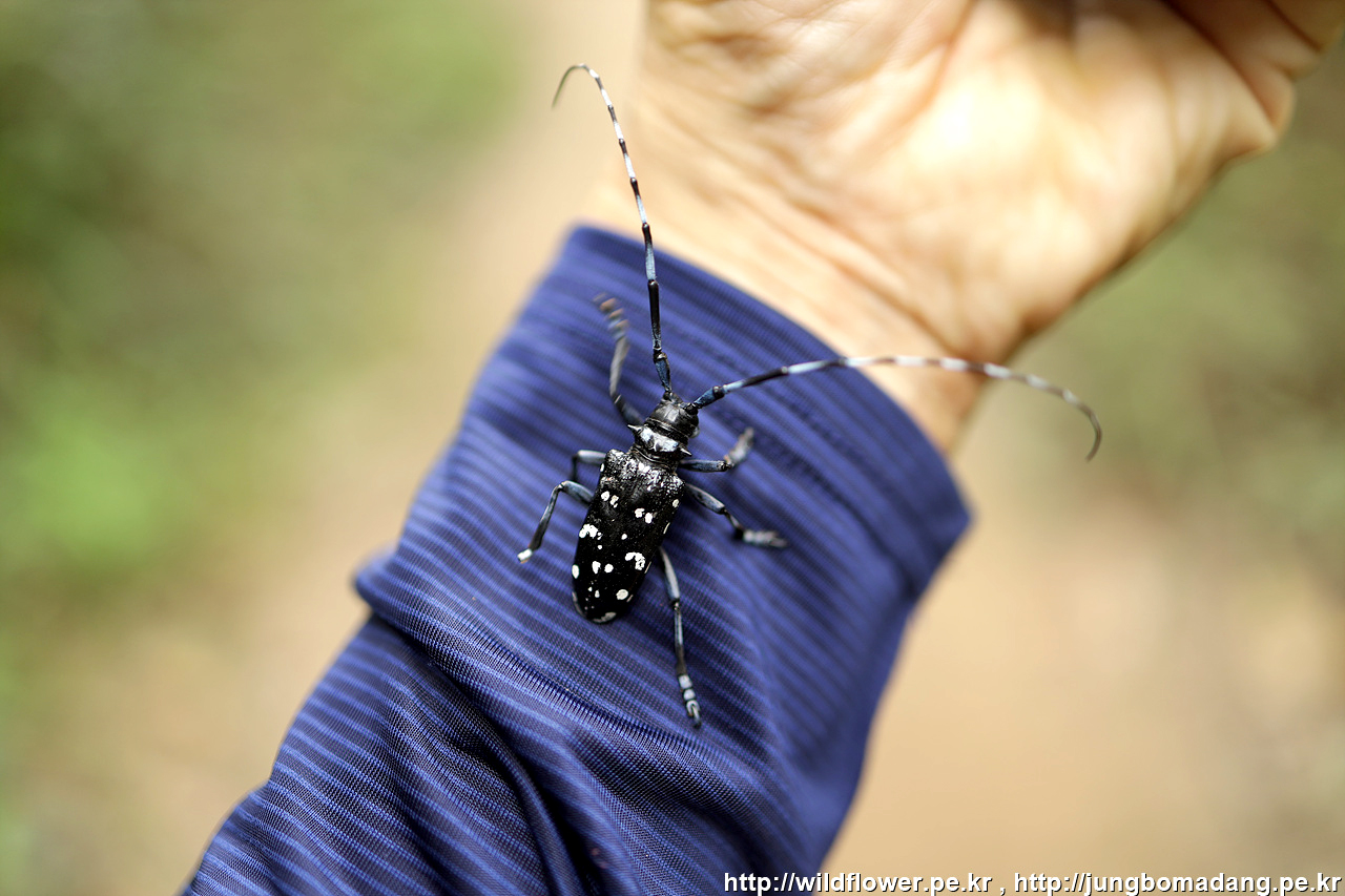 알락하늘소 - 오랜만에 만나네요! 물거나 하지 않아요. 안전한 곳에 내려 줍니다.