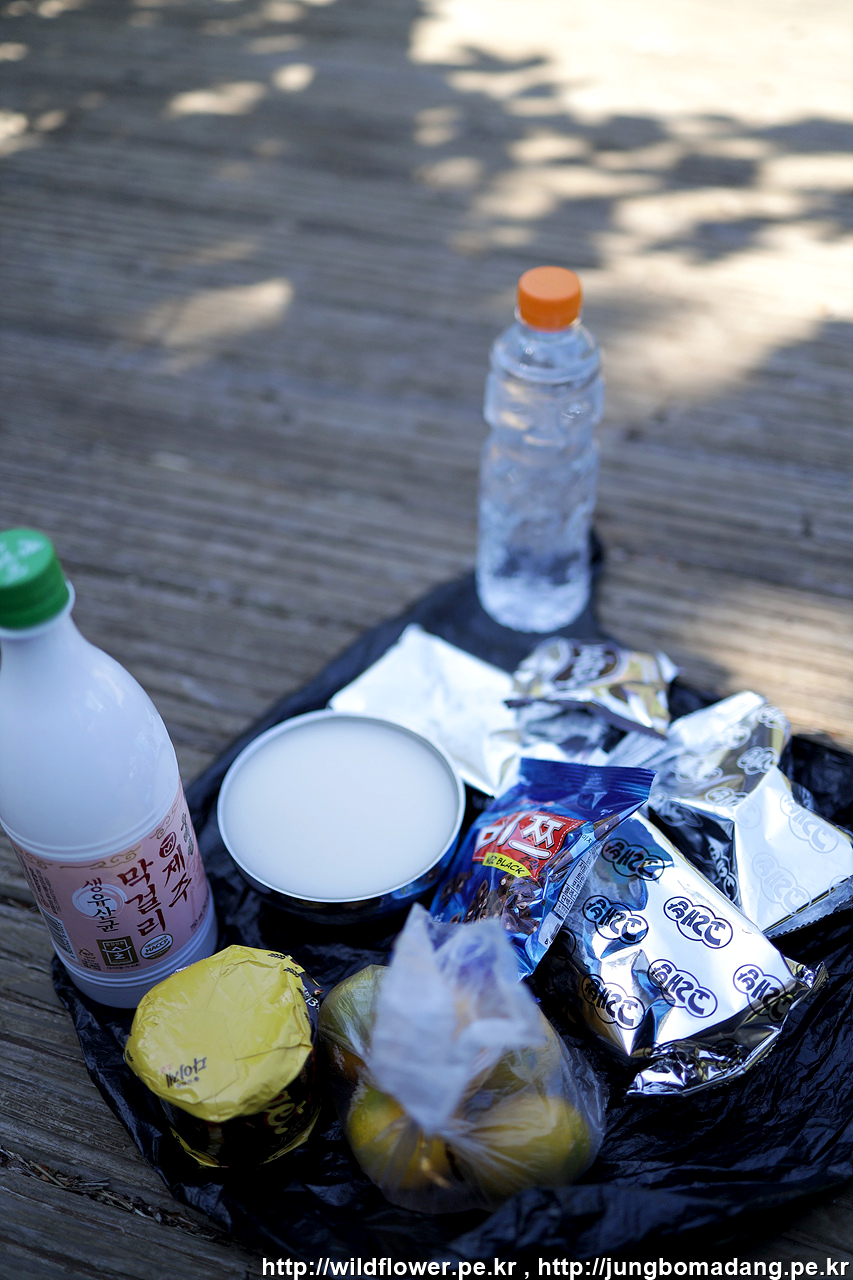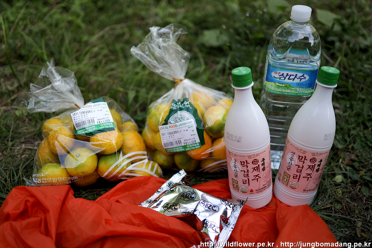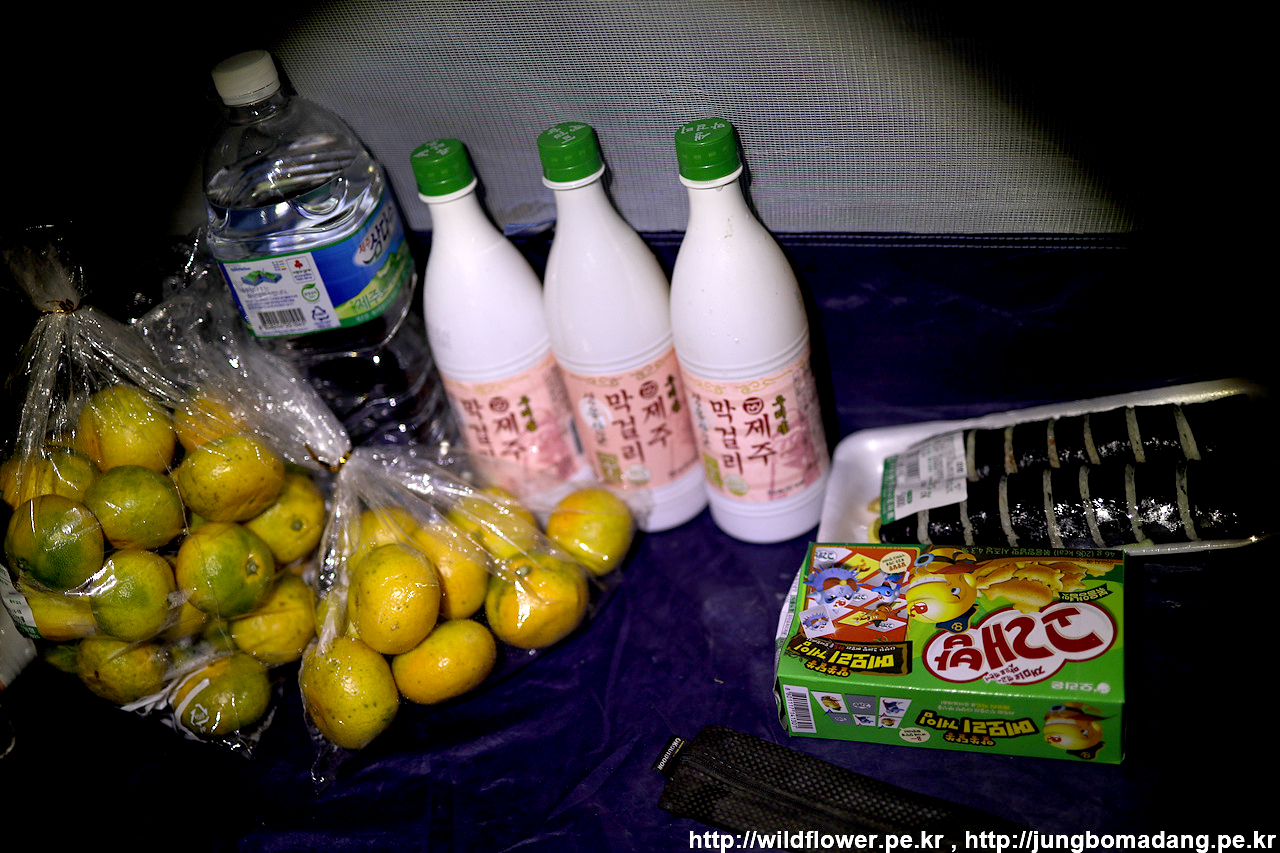 2Kg 짜리 귤 4500원. 2봉다리에 막걸리 두병에, 2L 물에 배낭이 무겁고 터질라해서 일단 비우고 가려고 주저 앉습니다. ㅋㅋ