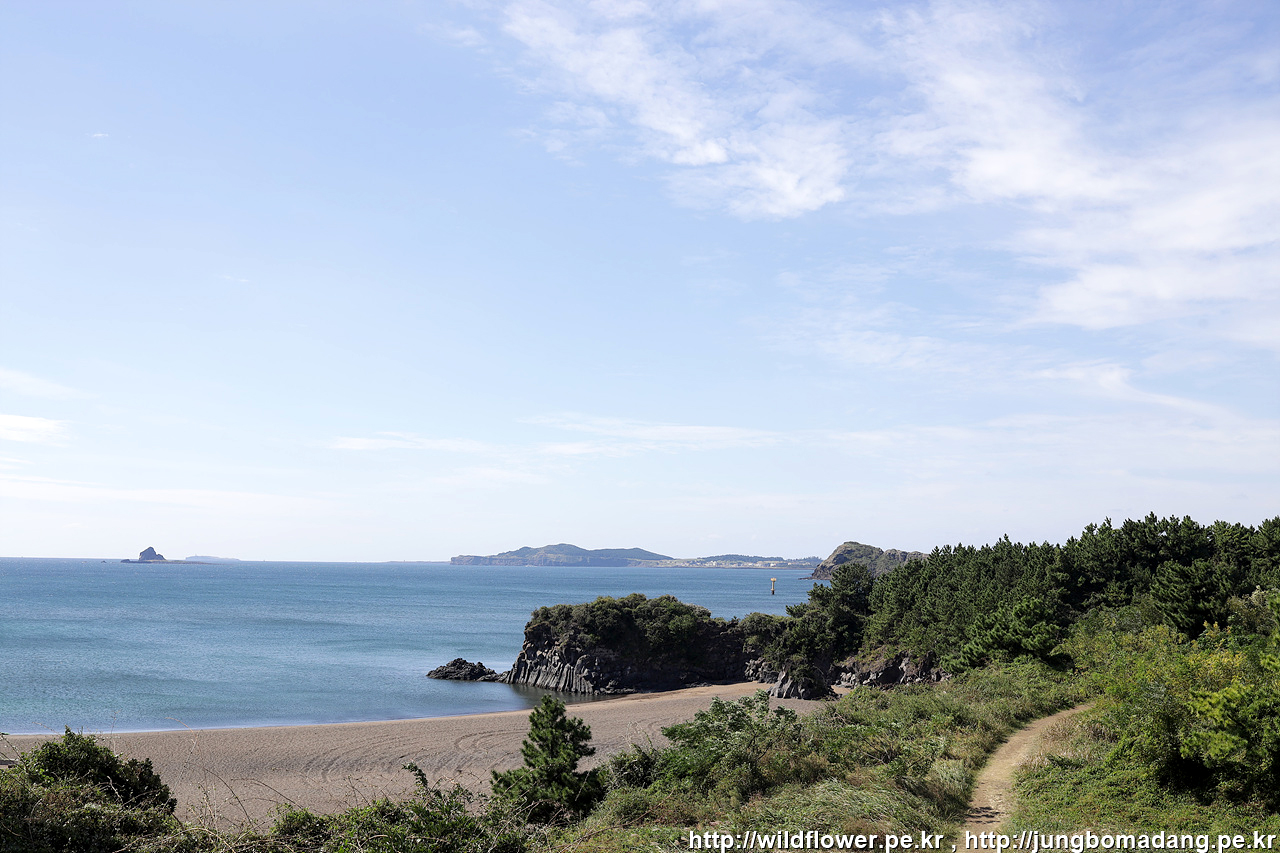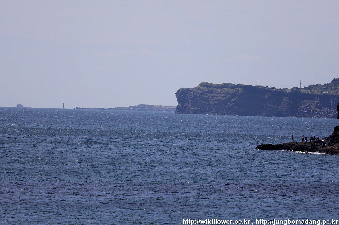 박수기정이 보입니다. 그 뒤로 좌측부터 우측까지 섶섬, 문섬, 범섬 이상 서귀포시내에서 볼 수 있는 3대 섬입니다.