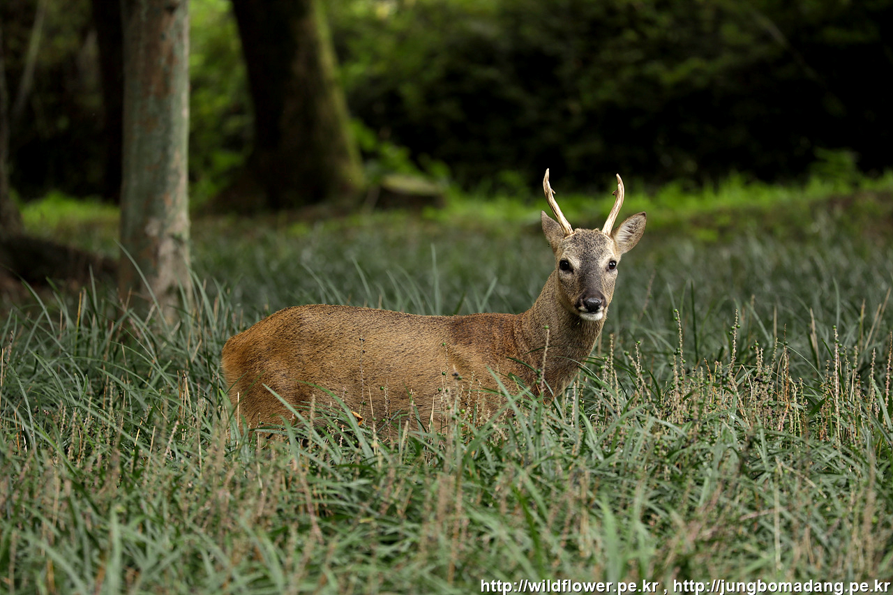 한라산노루 - 수컷. 맥문동 열매를 열심히 좝수고 있네요.