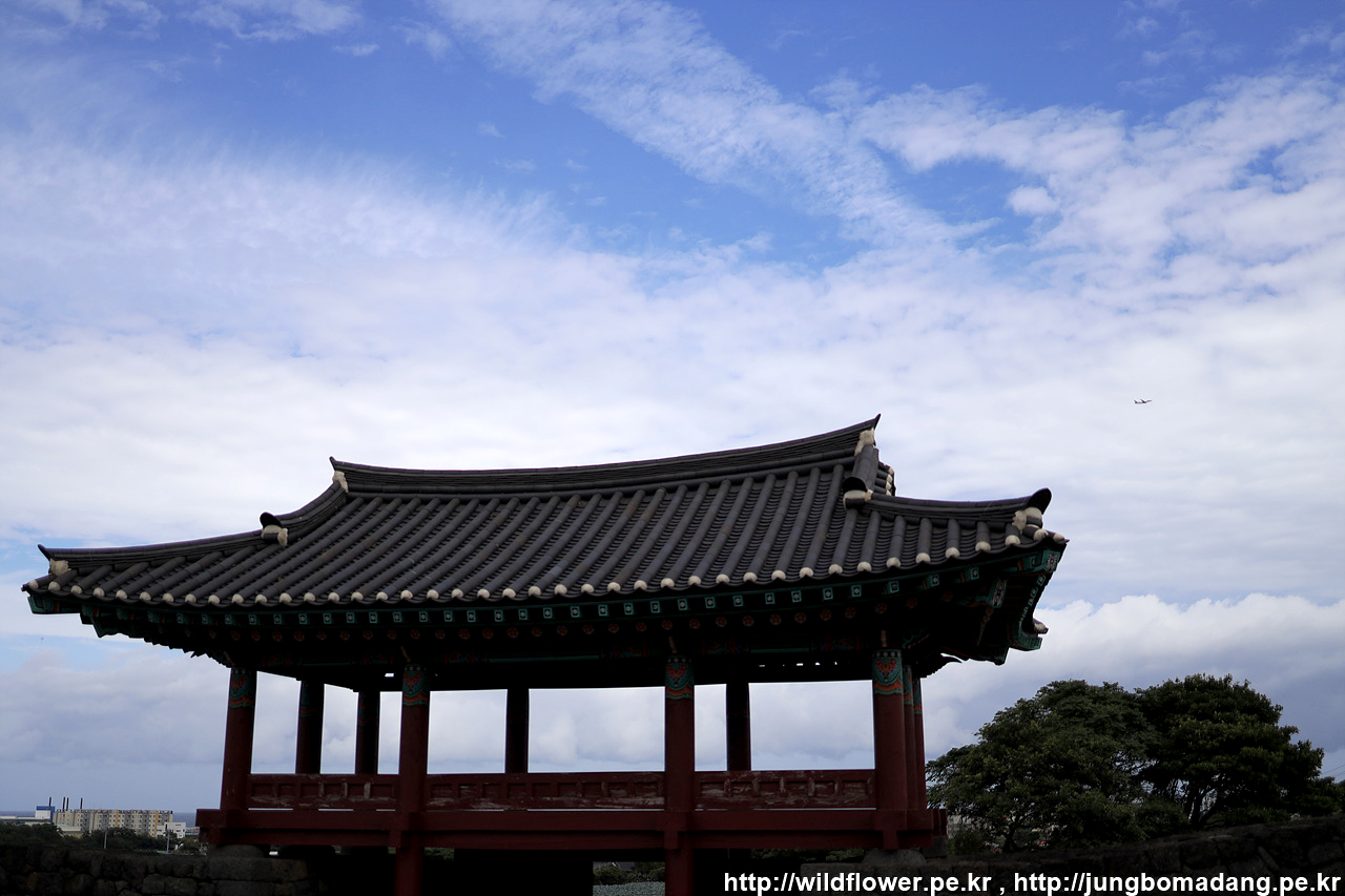 성문 우측 위로 제주공항으로 착륙하는 비행기도 보입니다.