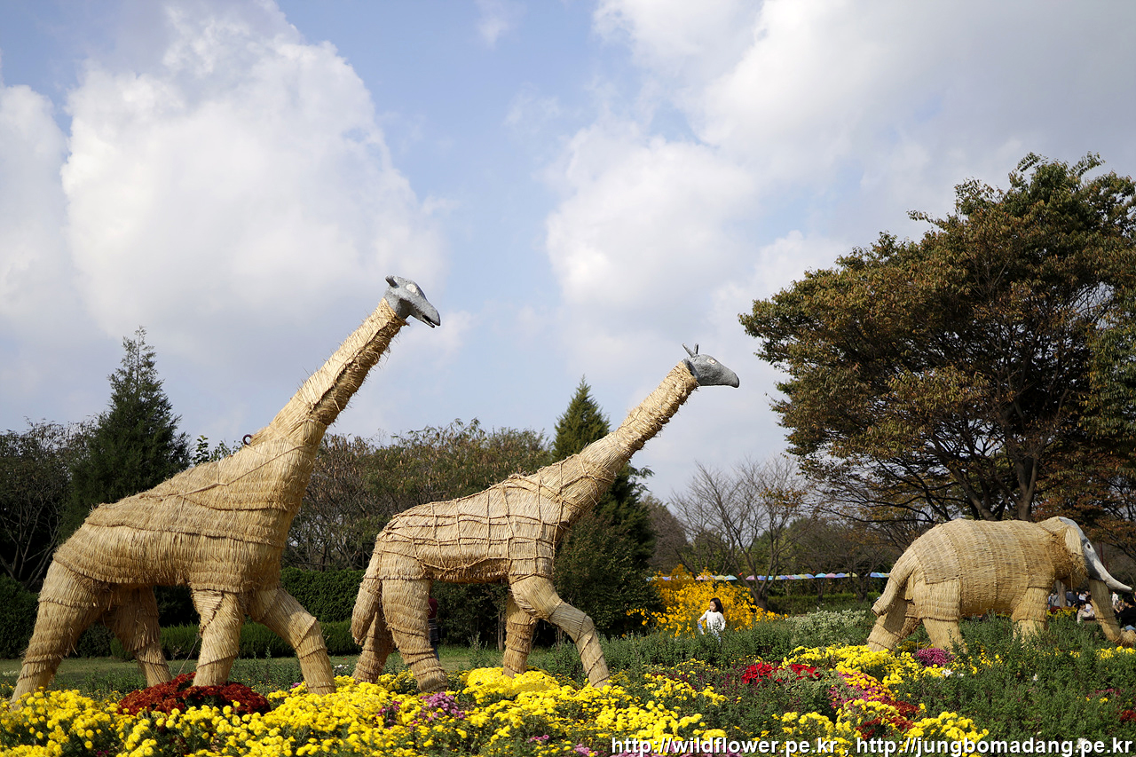 짚으로 엮은 기린과 코끼리도 있네요.