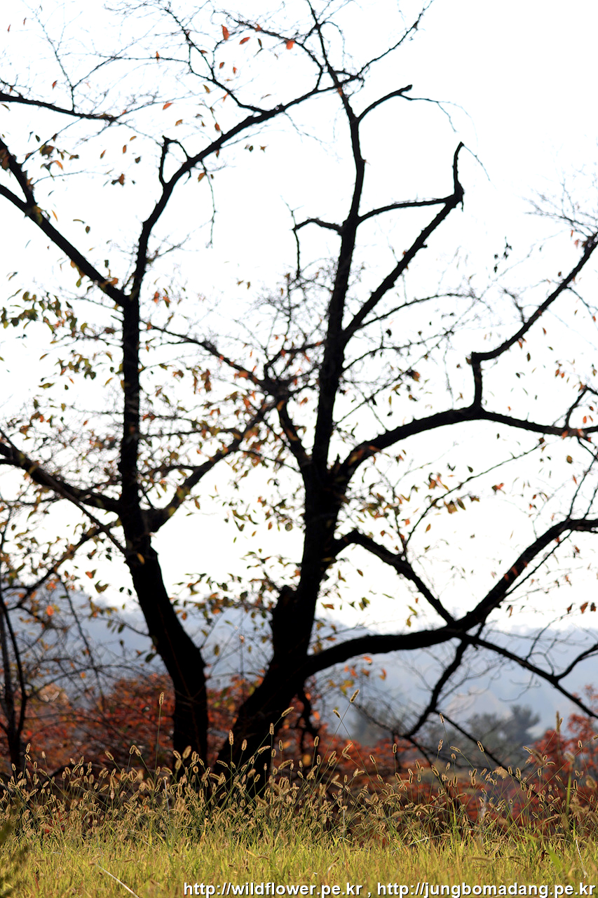 수양벚나무의 잎이 많이 떨어졌는 지 부실합니다.