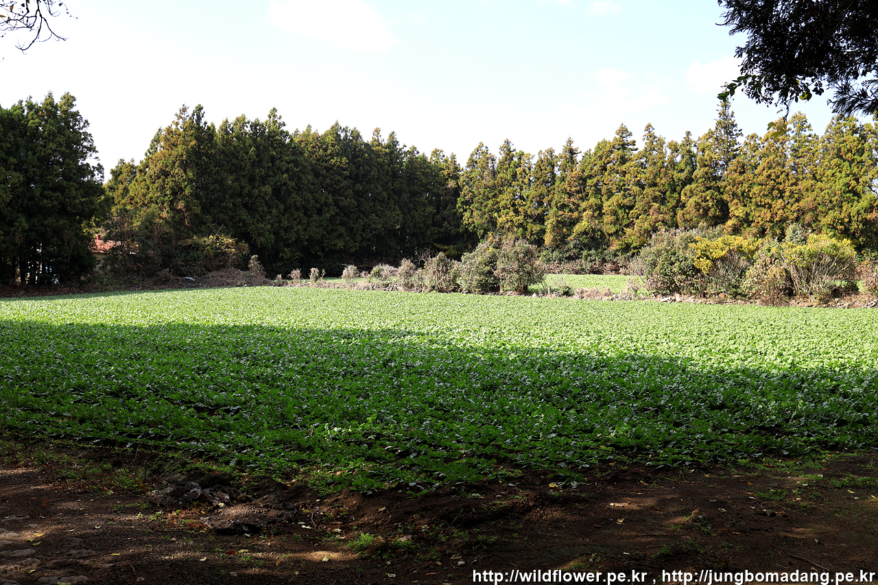 삼나무 터널을 지나자 마자 무밭이 보이고