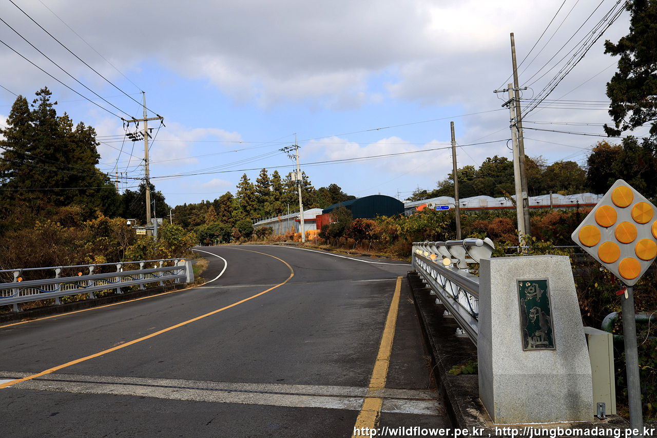 현의합장묘를 들려 다시 원래 민오름 주둔소 가는 길 4Km 이정표에서 민오름 주둔소쪽으로 가는 길... 도로에 차들이 쌩쌩 달리니 조심히 건넙니다.