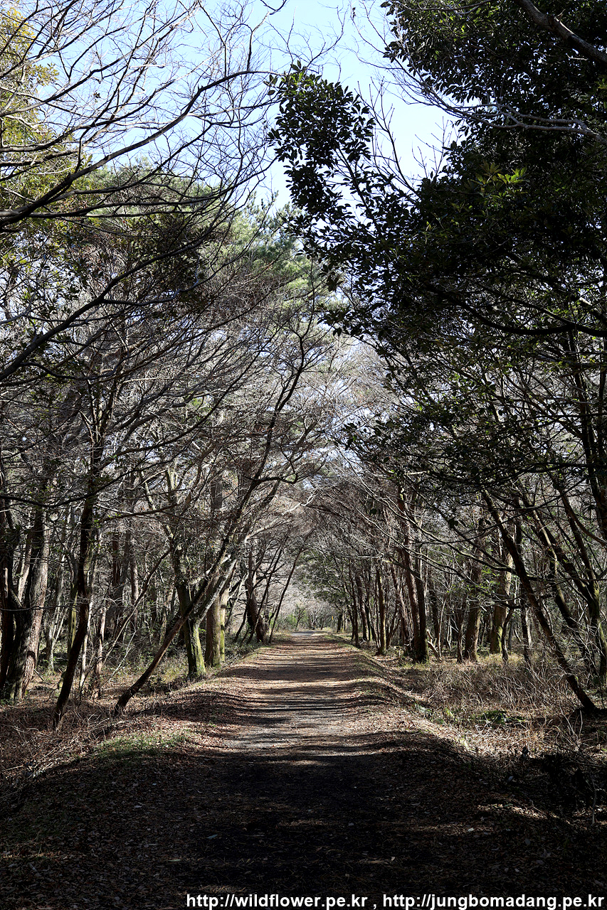 조금 가다 보니 동백 나무 아래 안내 리본이 달려 있네요.