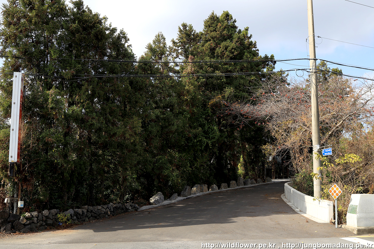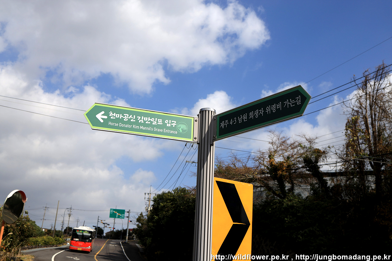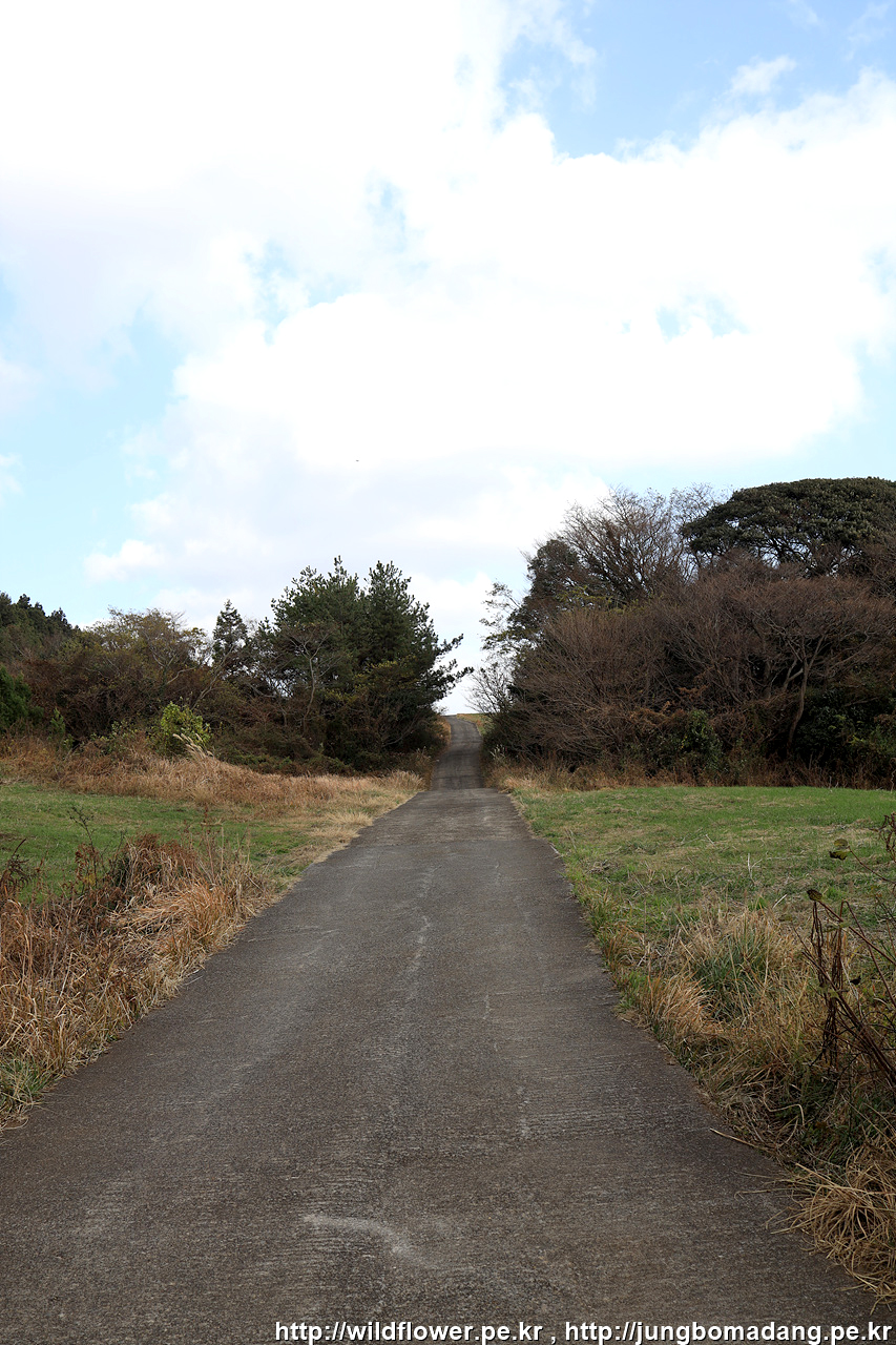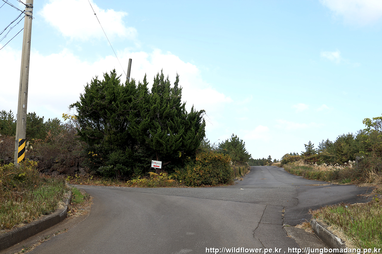 현의합장묘를 들려 다시 원래 민오름 주둔소 가는 길 4Km 이정표에서 민오름 주둔소쪽으로 가는 길... 도로에 차들이 쌩쌩 달리니 조심히 건넙니다.