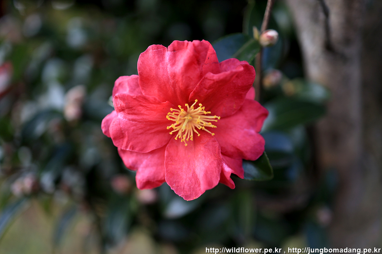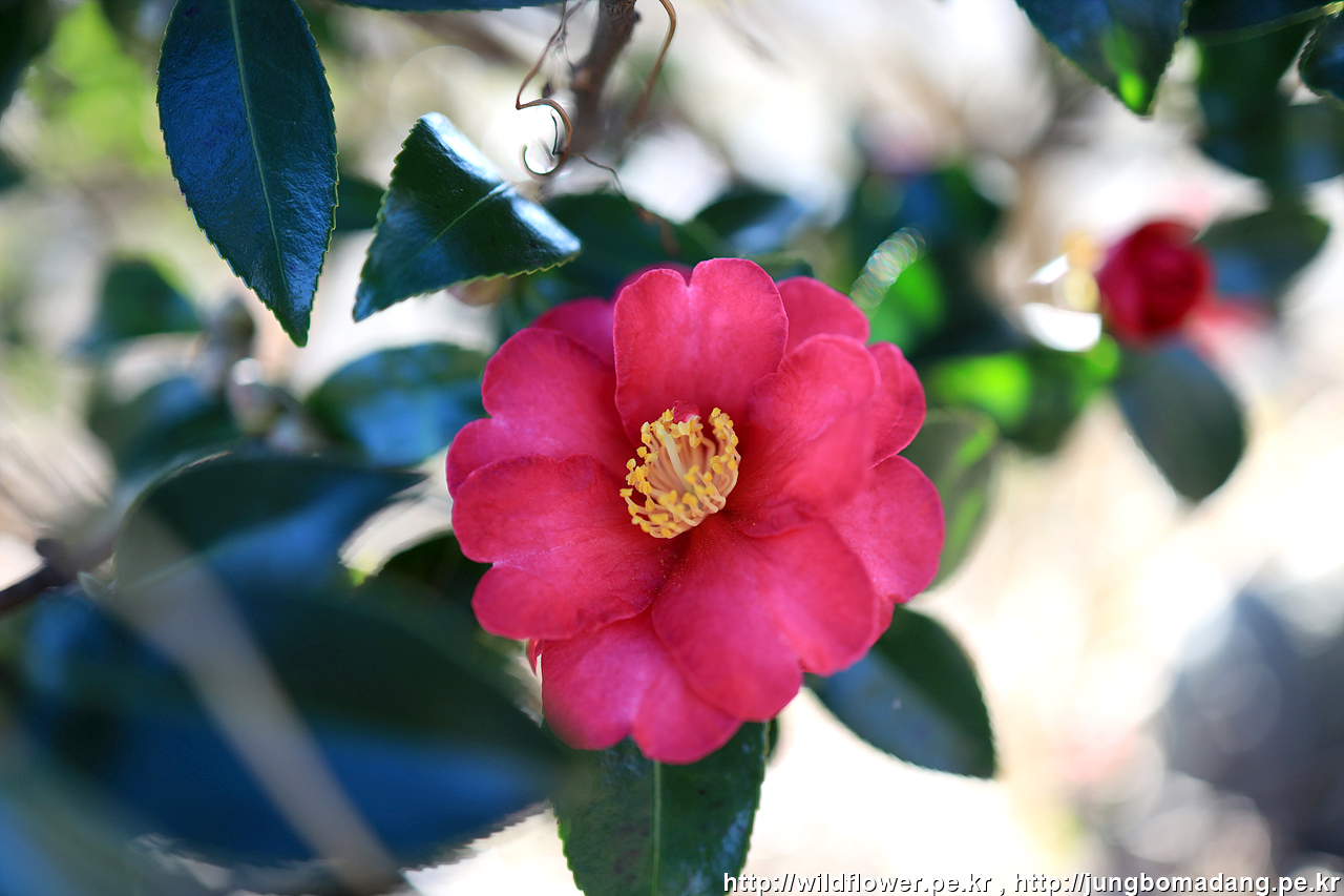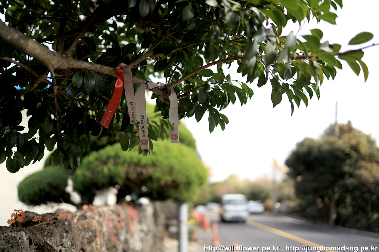 조금 가다 보니 동백 나무 아래 안내 리본이 달려 있네요.