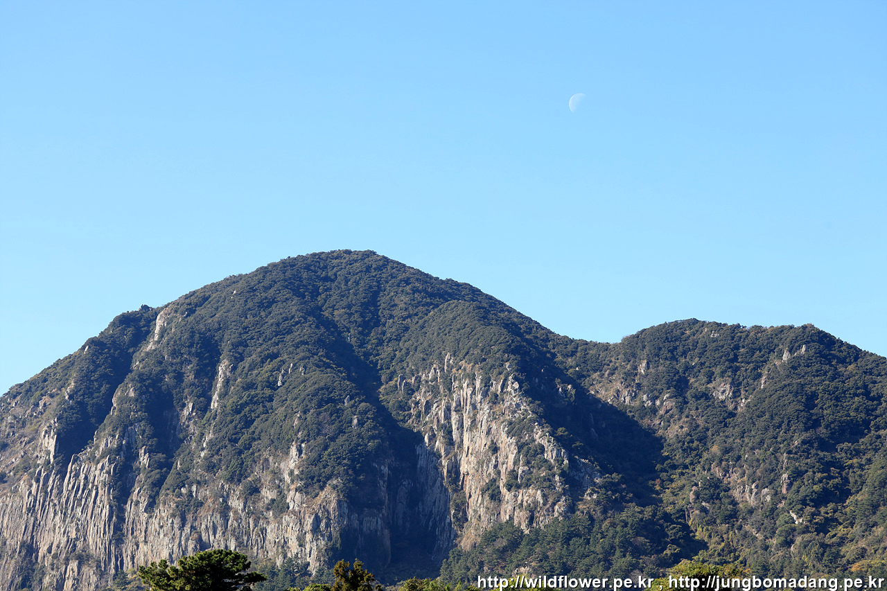 산방산 위로 달님이 보이네요.