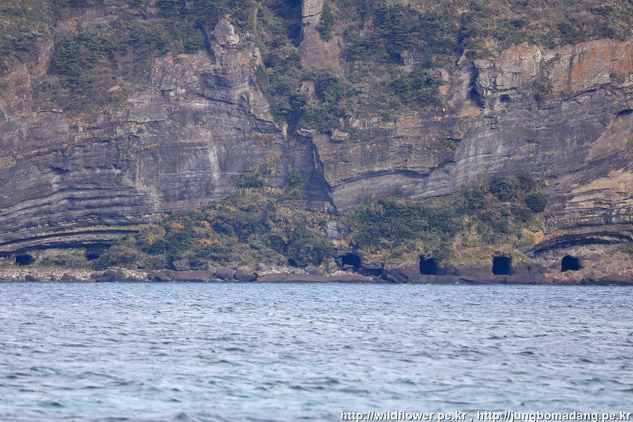 성산일출봉 아래 일본 새끼들이 전에 파놓은 진지 동굴들이 보입니다.
