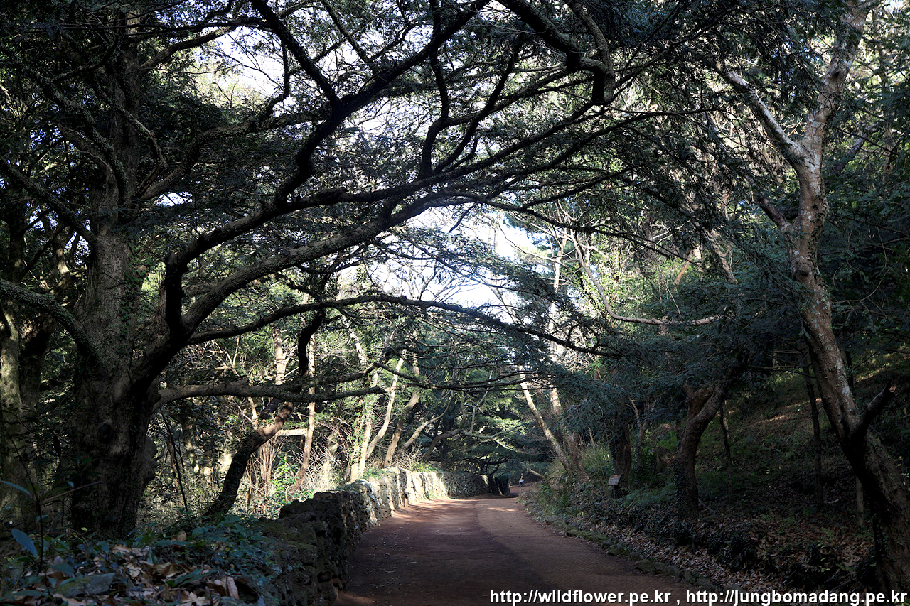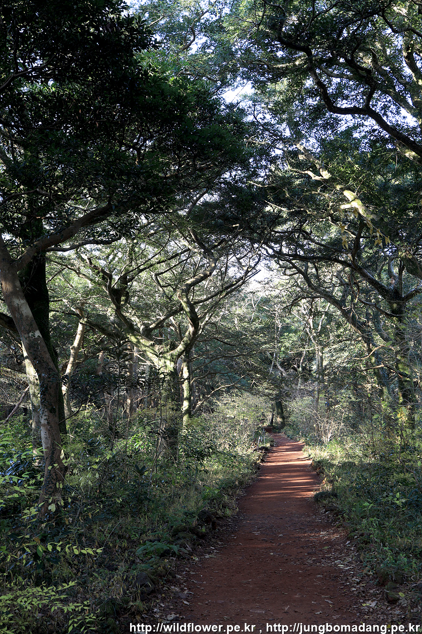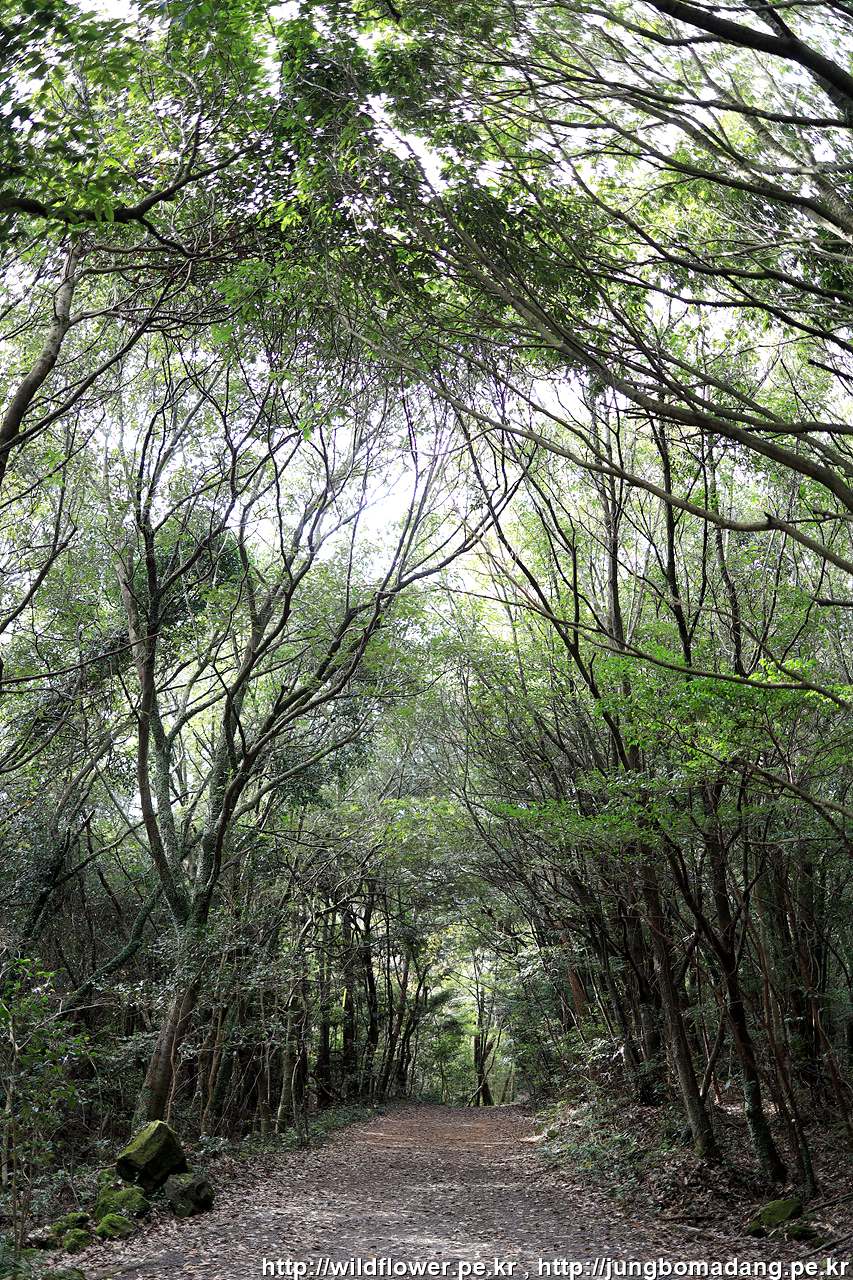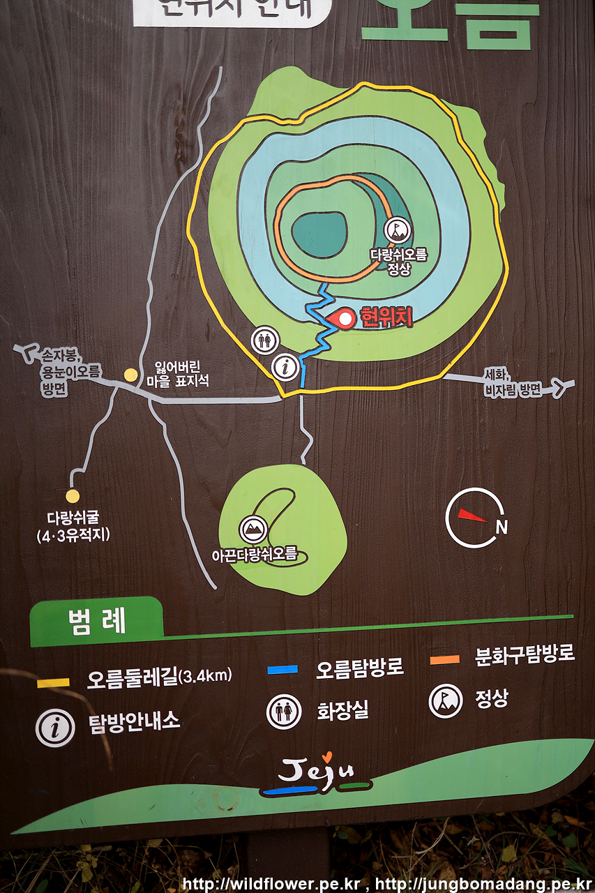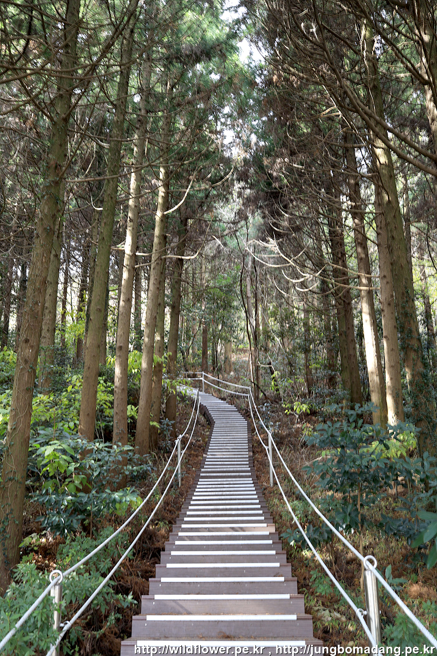 중간에 좌측편으로 나무가 심어진 경사가 시작되는 곳이 오름 내려가는 곳과 이어지는 삼거리 입니다.