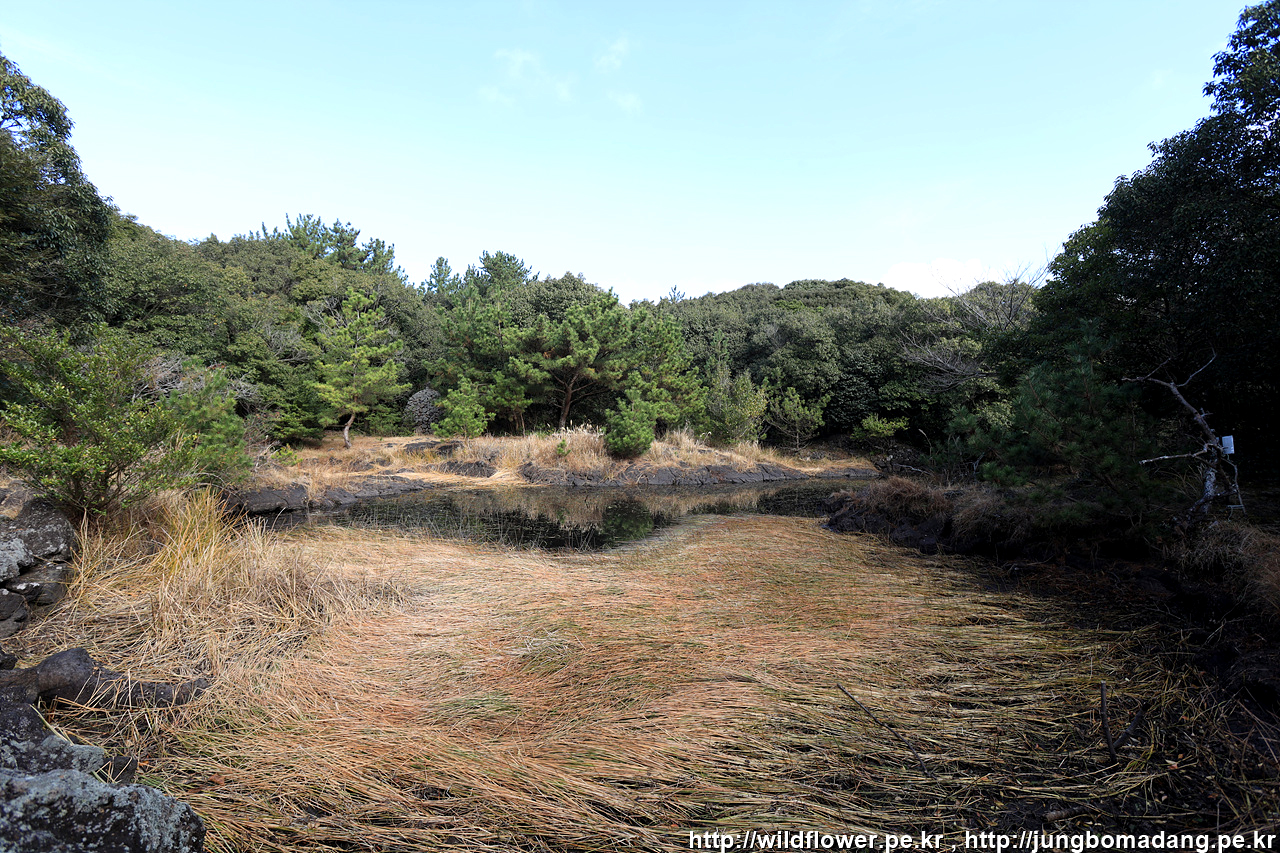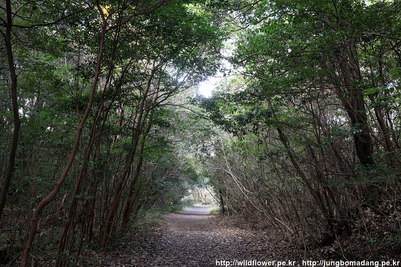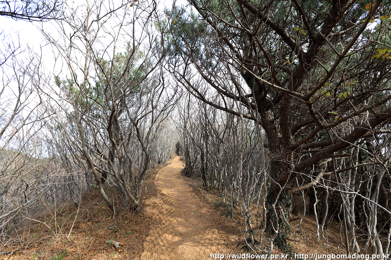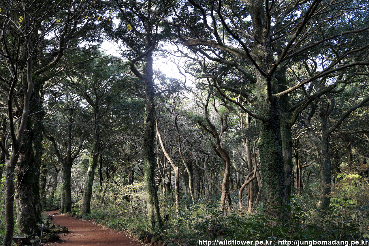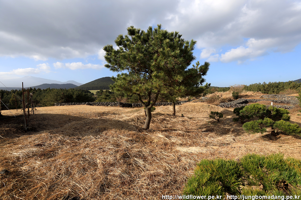 중간에 좌측편으로 나무가 심어진 경사가 시작되는 곳이 오름 내려가는 곳과 이어지는 삼거리 입니다.