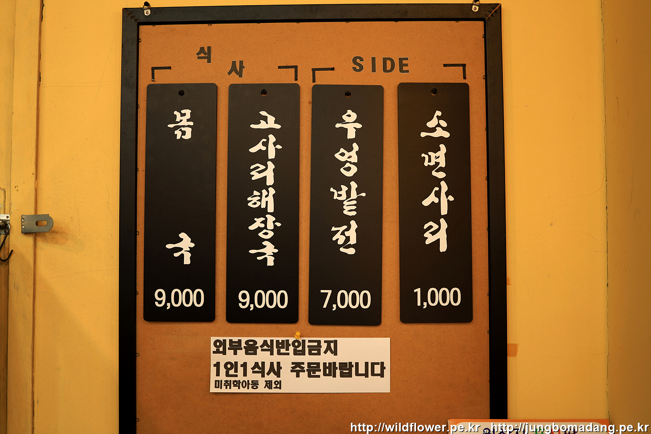 고기 튀김이 없어지고 우영밭전이 생겼네요? 고사리 해장국, 우영밭전, 맥주 하나 주문합니다. 맥주는 5천원입니다.