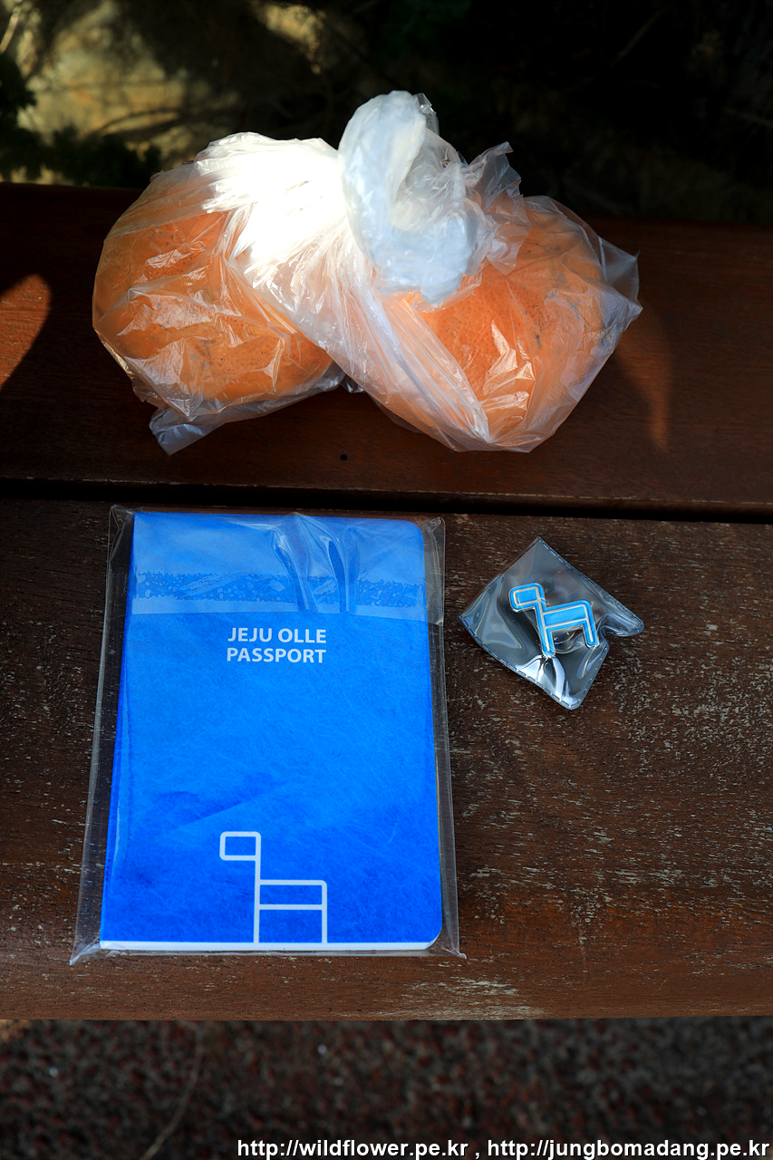 해녀박물관 제주 올레 21코스 안내소에서 이런 저런 이야기를 하다가 충동적으로 스탬프북을 하나 구매합니다. 뱃지도 하나 선물해 주시고, 귤도 나눠 주시네요. 고맙습니다!. 올레 완주 한번 한 적 있어 오렌지색 완주 뱃지가 있고 파란색 완주 뱃지를 위해 노력해야 겠습니다!