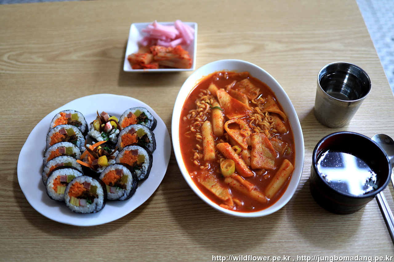모닥치기를 원했으나! 순대가 다 떨어졌다고 하셔서 김밥 하나 라볶이 하나 주문합니다.