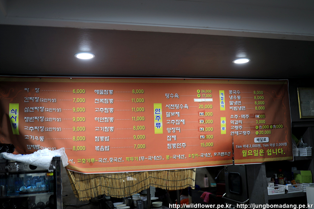 메뉴판. 간짜장 2인이상이라 짜장 곱 하나 주문하고 탕수육 중짜는 포장합니다.