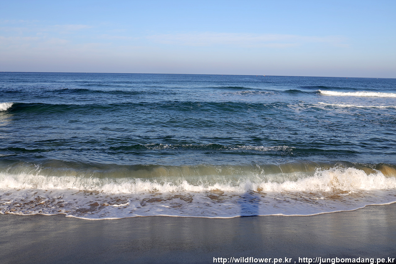 해변 뒤로 좌측에 설악산도 보이고, 우측에 보이는 곳은 큰 건물들은 속초겠죠?