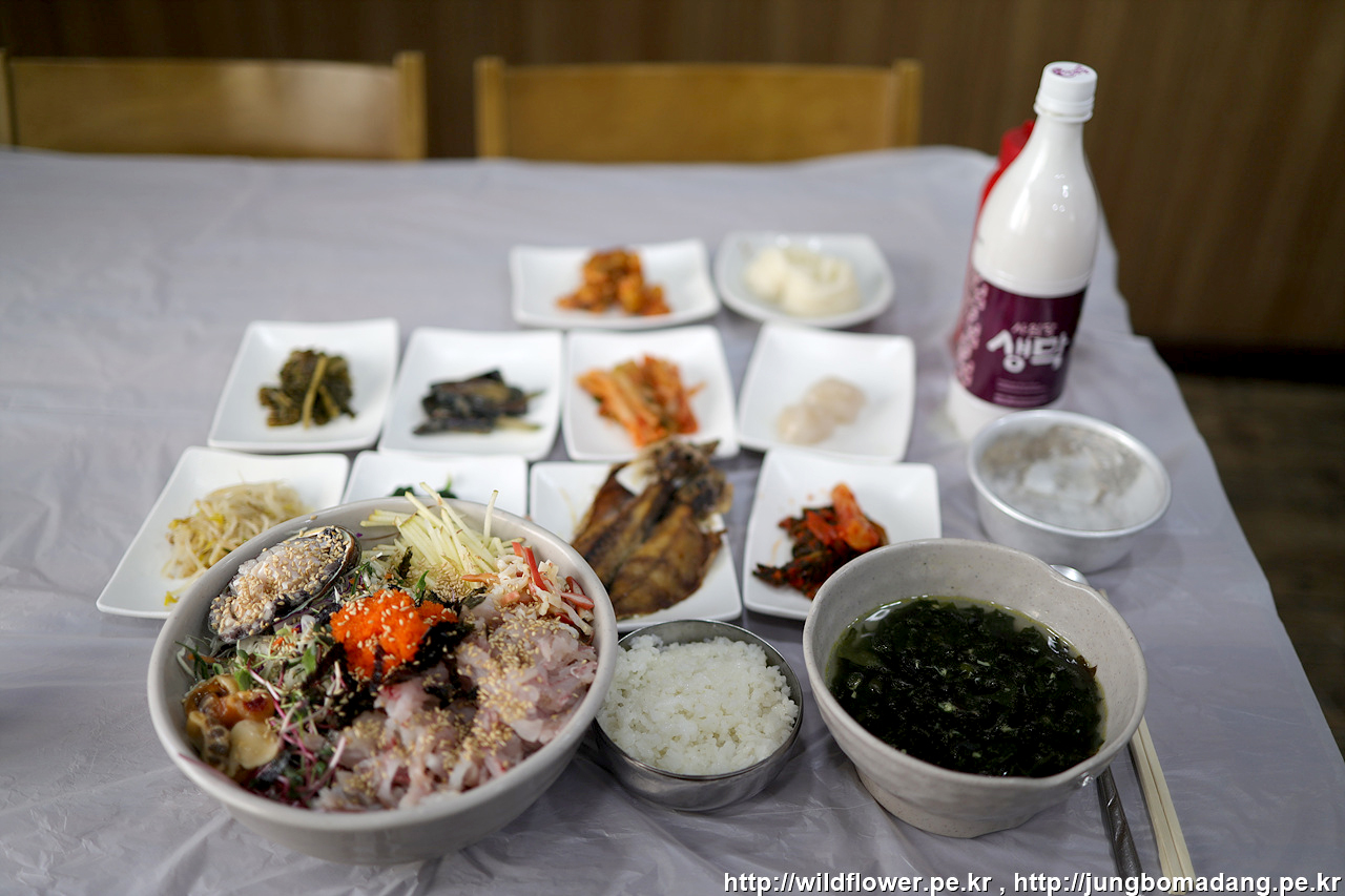 다 나왔습니다. 밥 먼저 먹고, 남은 회에 소면을 투척해서 먹습니다.