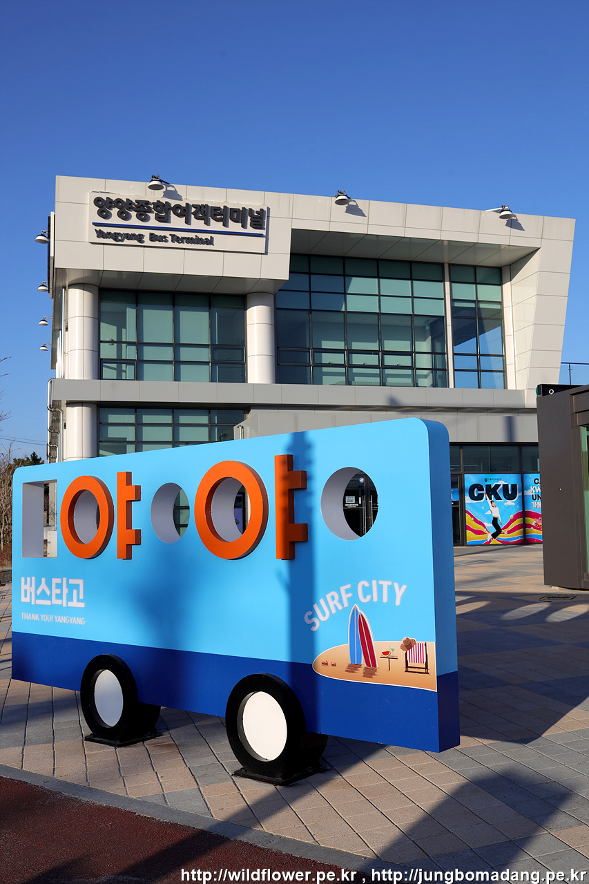 하광정리 버스 정류장에서 12번 버스를 15시 36분(기점에서 15시 10분에 출발)에 타고 27분 후에 양양종합여객터미널에 도착합니다.