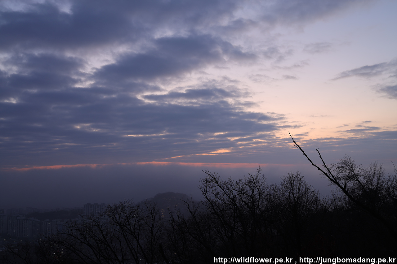다행히 구름이 살짝 걷히면서 잠실쪽으로 붉은 기운이 느껴집니다.