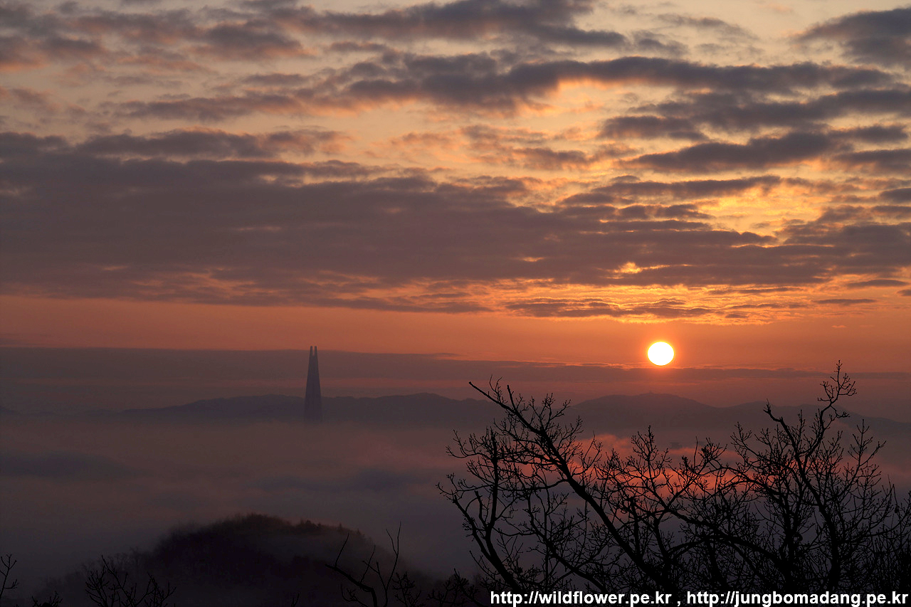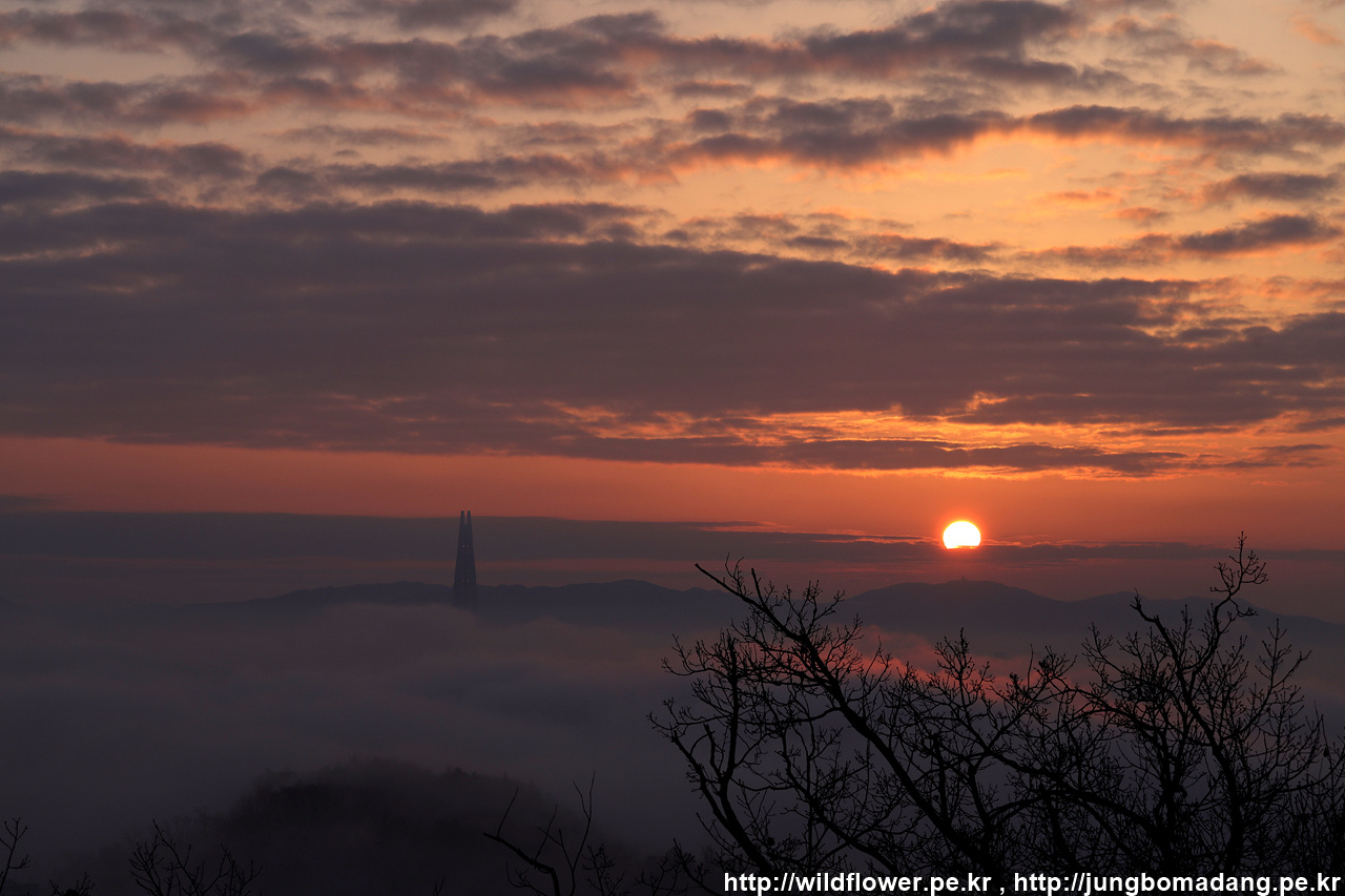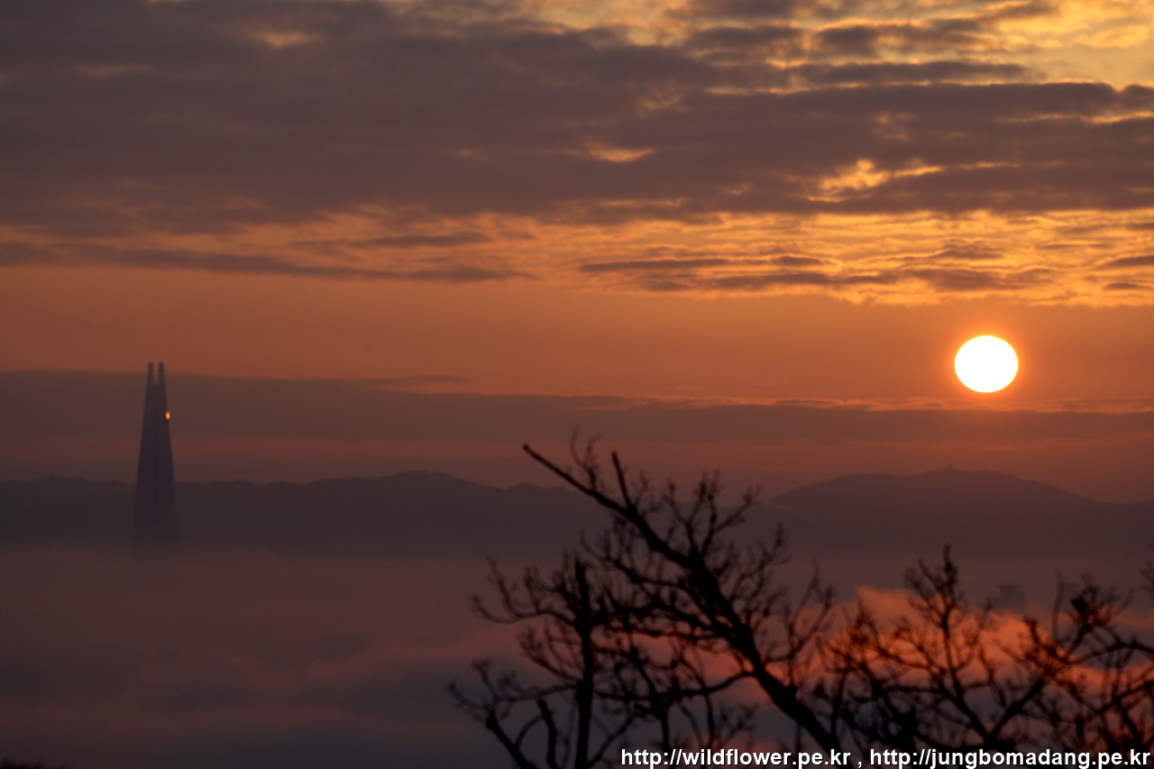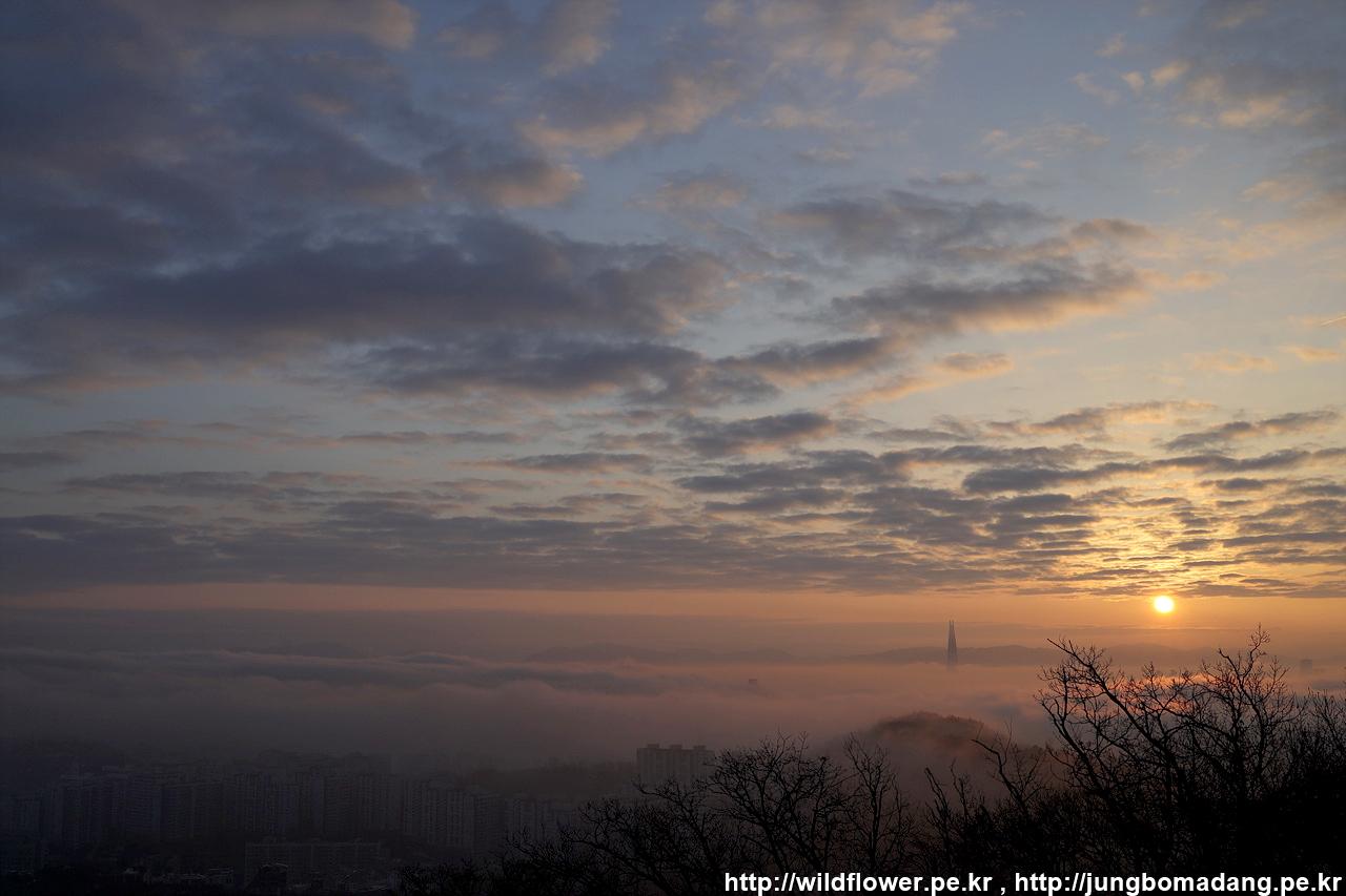 다행히 구름이 살짝 걷히면서 잠실쪽으로 붉은 기운이 느껴집니다.