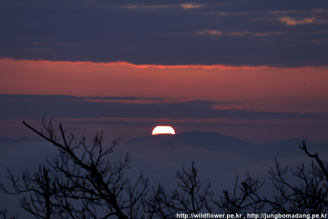 살짝 운해가 끼면서 일출과 조화를 이룹니다.