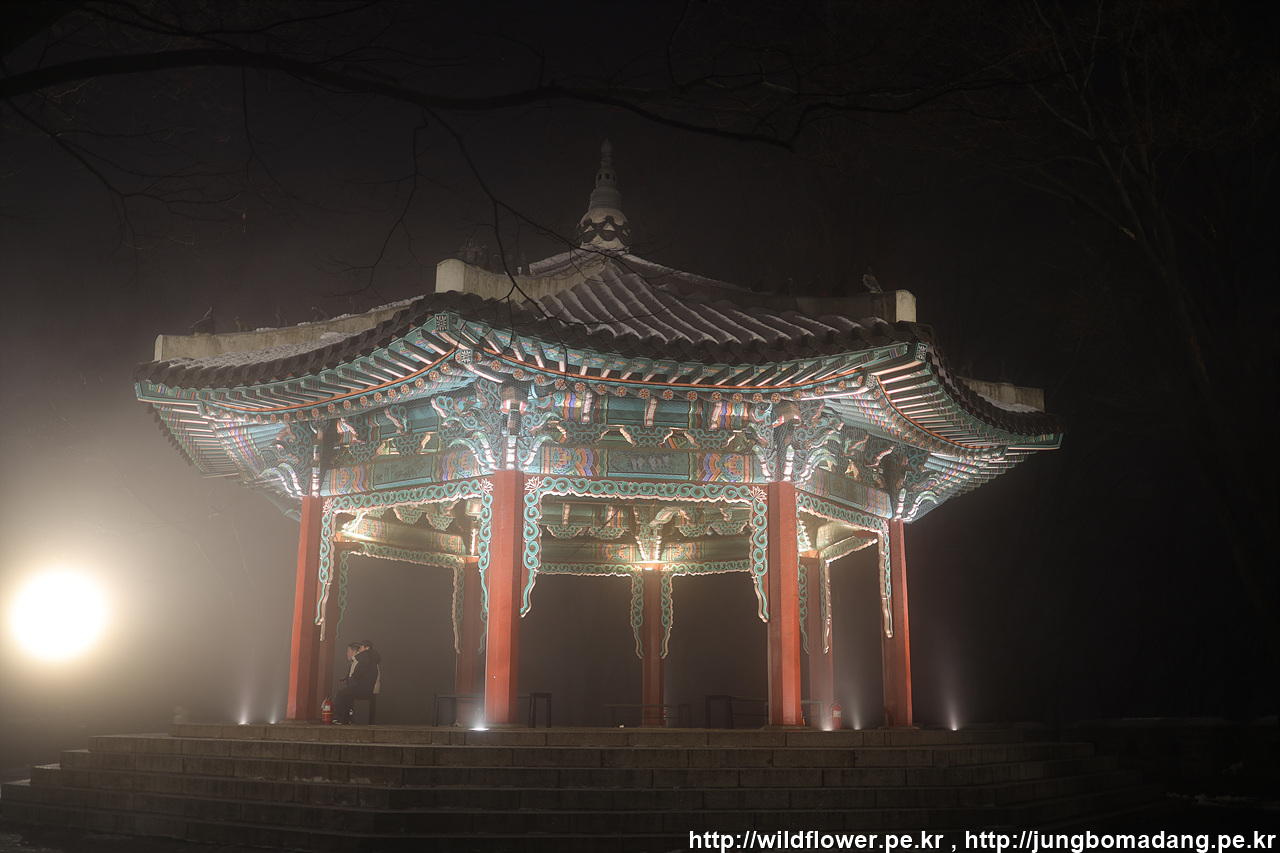 팔각정 - 야경. 미세먼지인지 안개인지 몰려와서 뿌옇습니다.