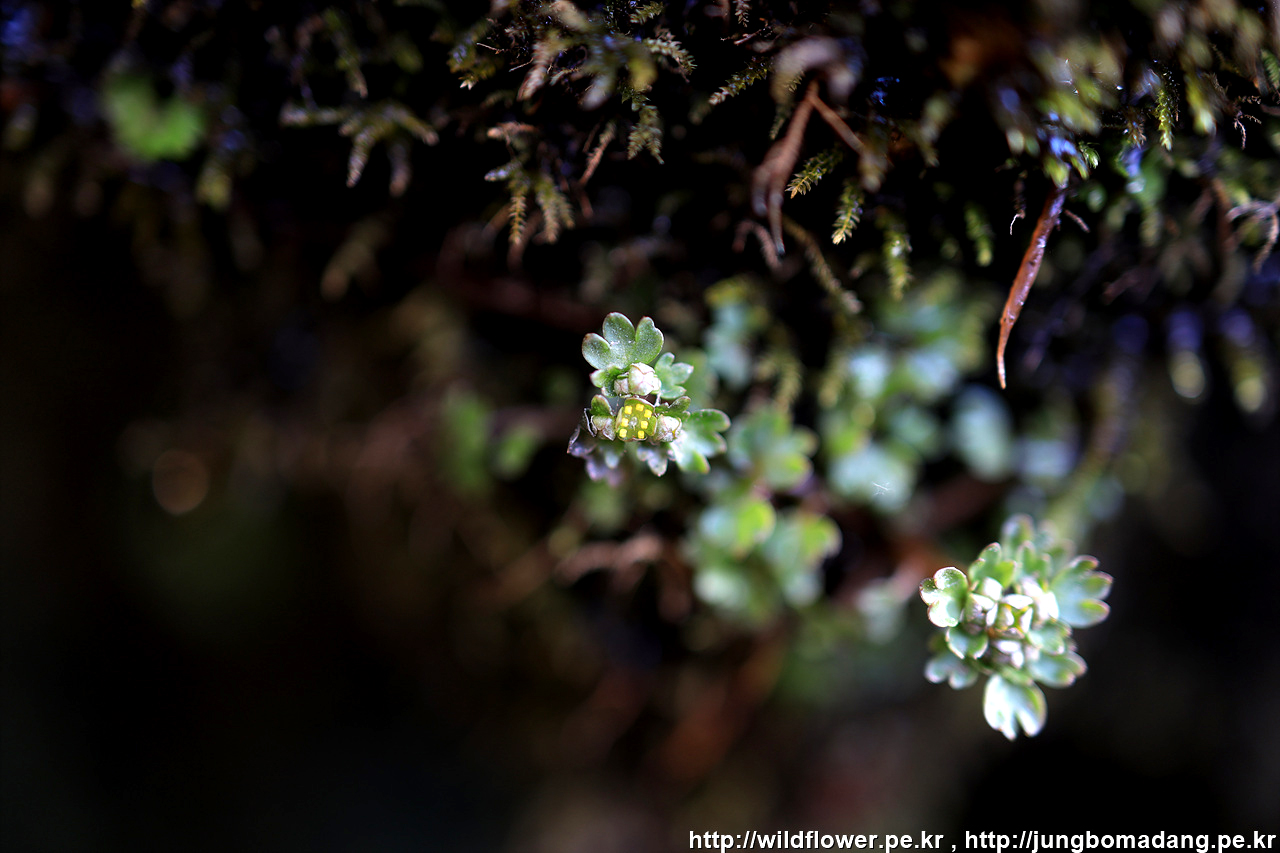 애기괭이눈 군락에는 서너 개체가 피어 있네요.