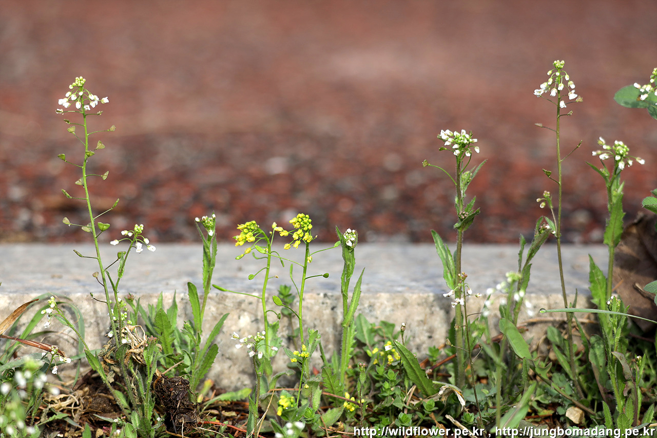 는쟁이냉이 - 가운데 흰꽃을 머금은 꽃봉오리가 보이네요.